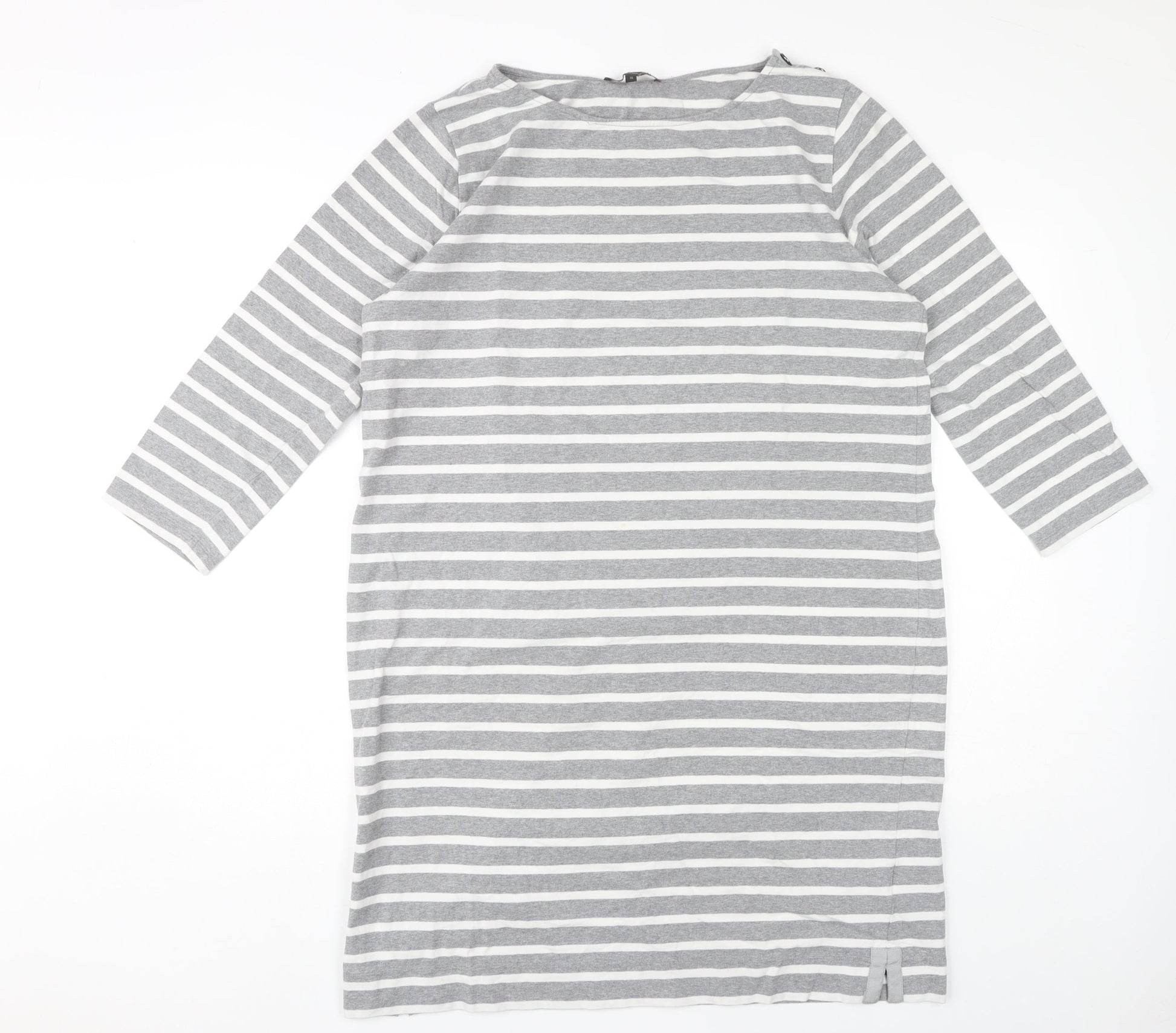 Jaeger Women's Grey Striped Boat Neck Dress, XL