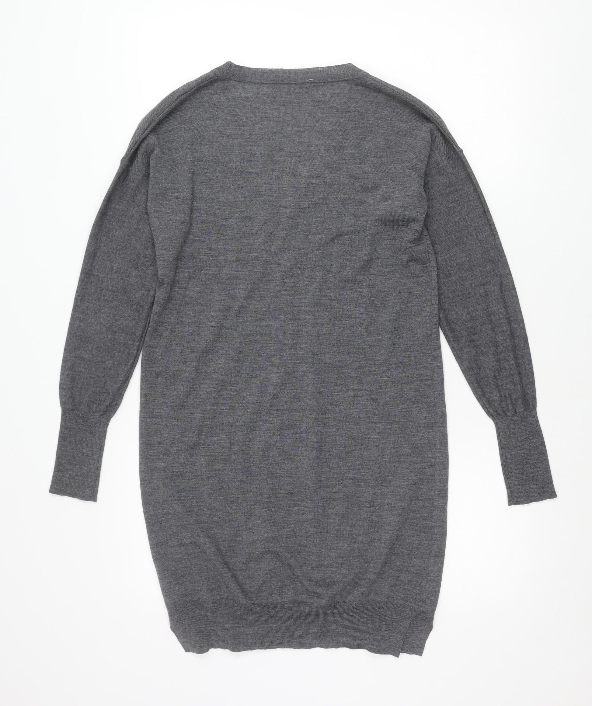 Jaeger Womens Grey Wool V-Neck Pullover Jumper Size S