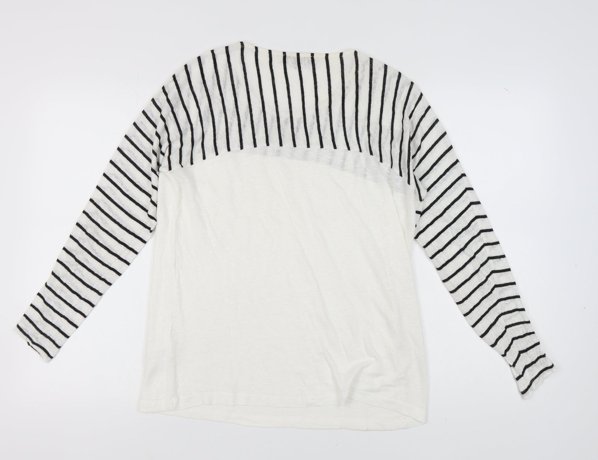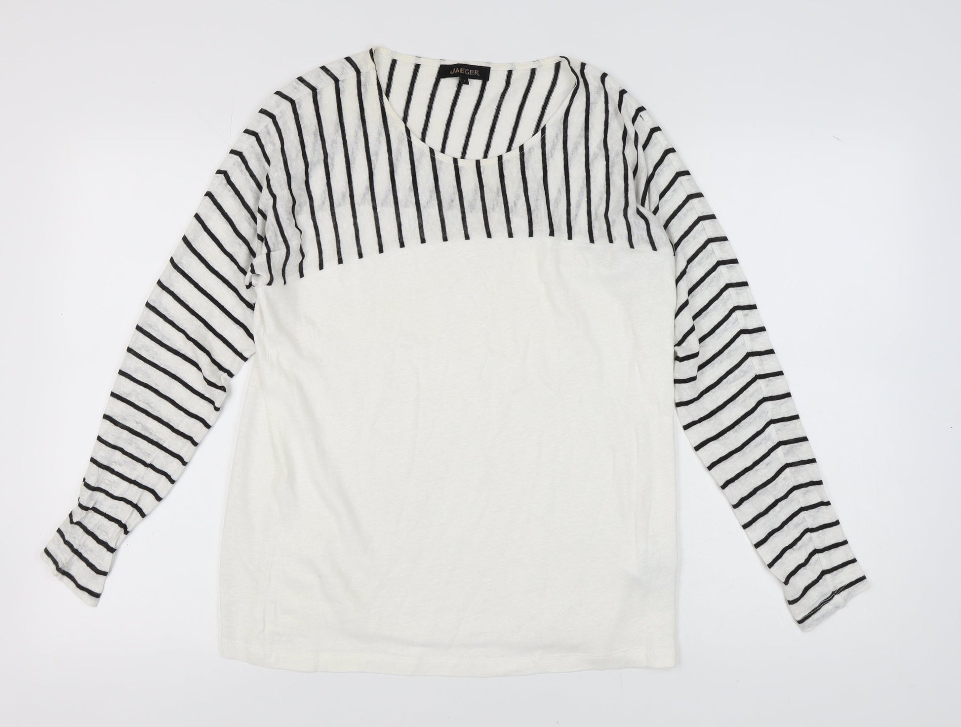 Jaeger Women's Ivory Striped Linen Long Sleeve T-Shirt L