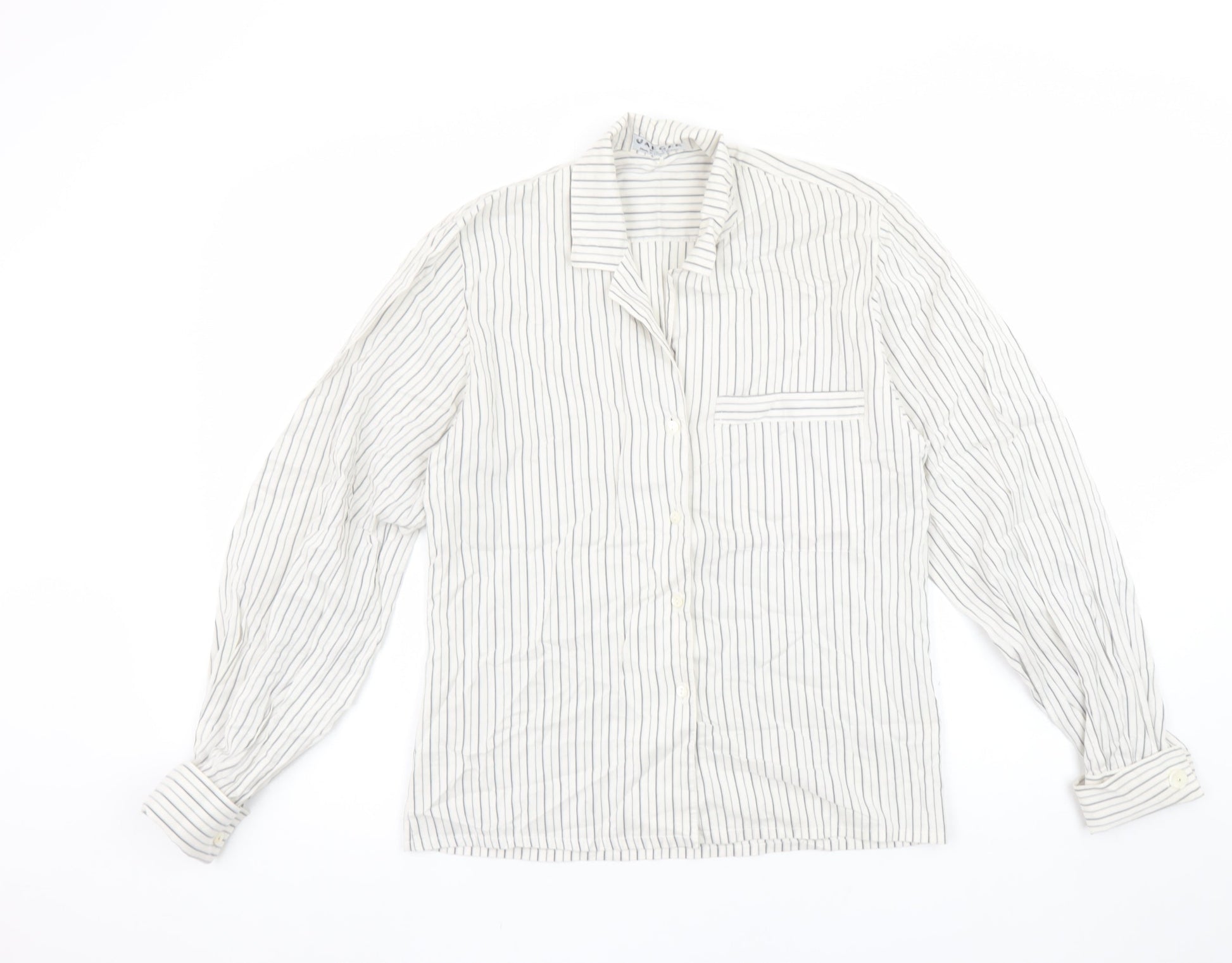 Jaeger Womens White Striped Cotton Long Sleeve Button-Up Shirt Size 10
