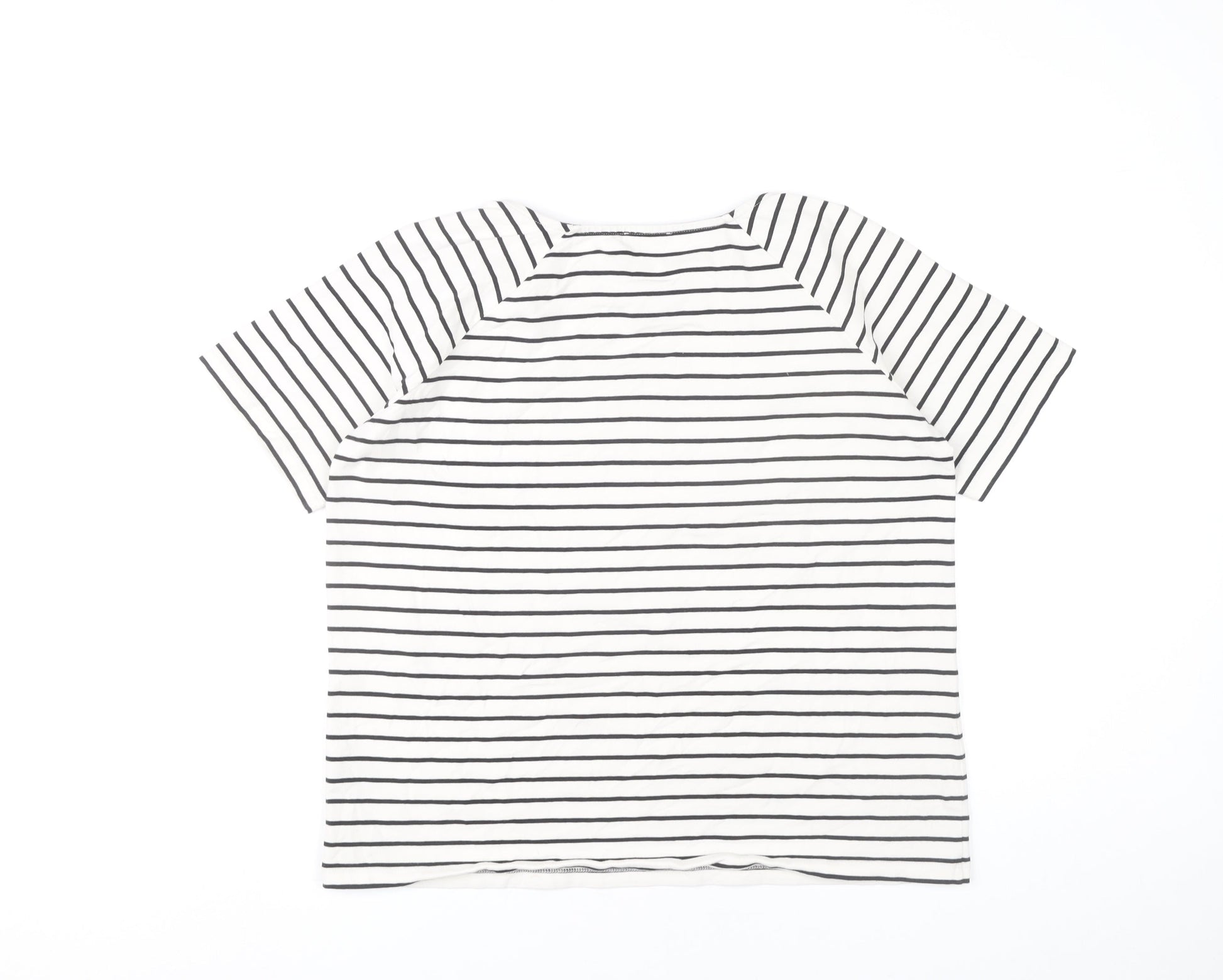 Jaeger Womens White Striped L Jersey Cotton Stretch T-Shirt