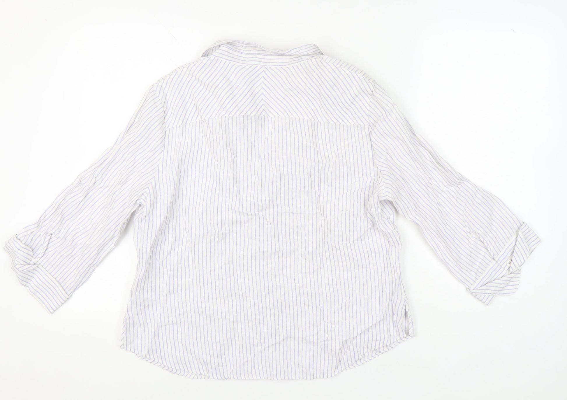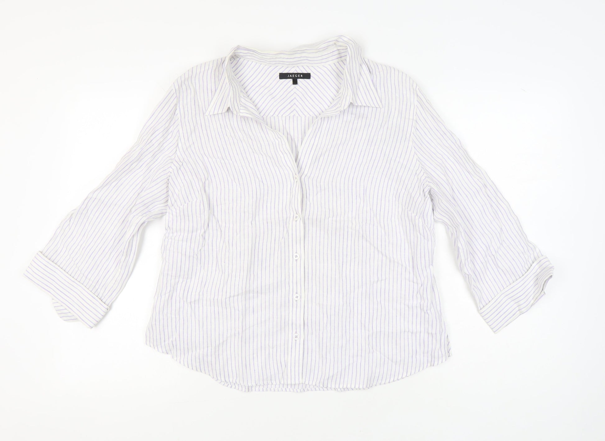 Jaeger Womens White Striped Linen Button-Up Shirt UK 18 3/4 Sleeve