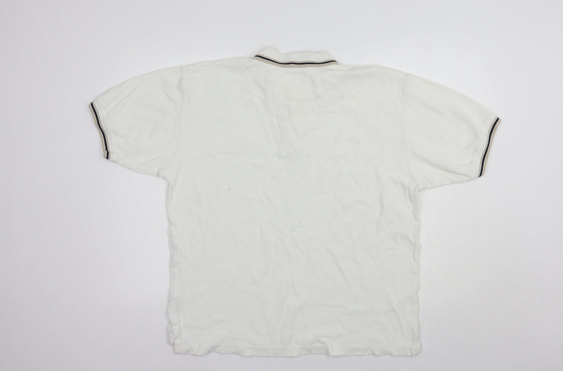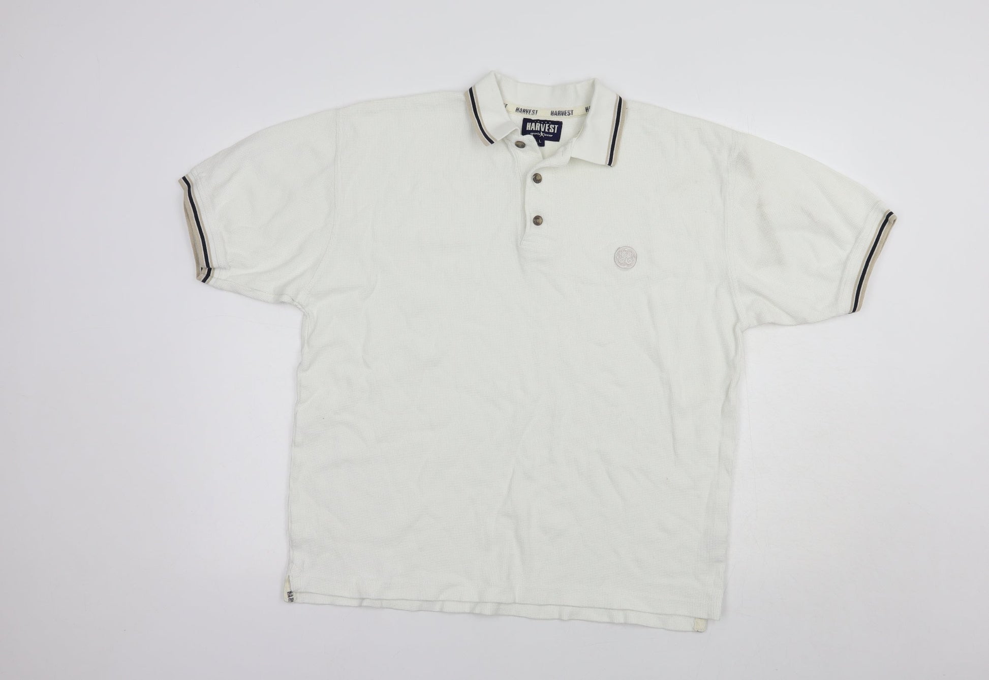 James Harvest Mens White Cotton Polo Size L Collared Button