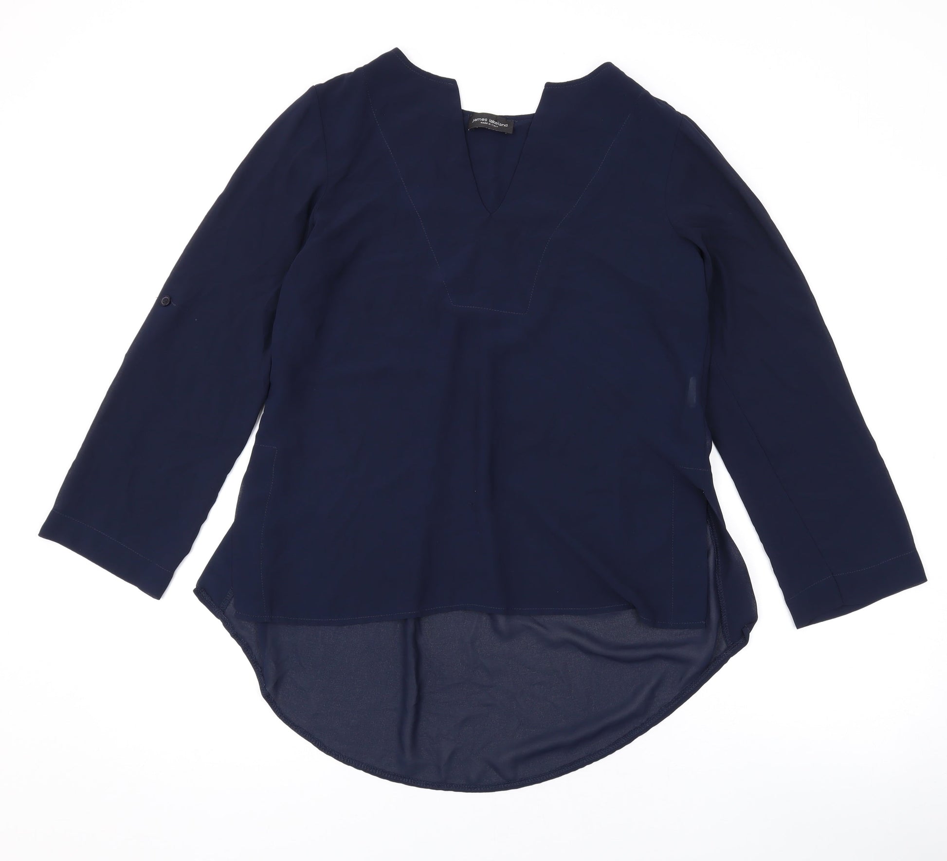 James Lakeland Womens Blue Polyester Basic Blouse Size 14 V-Neck