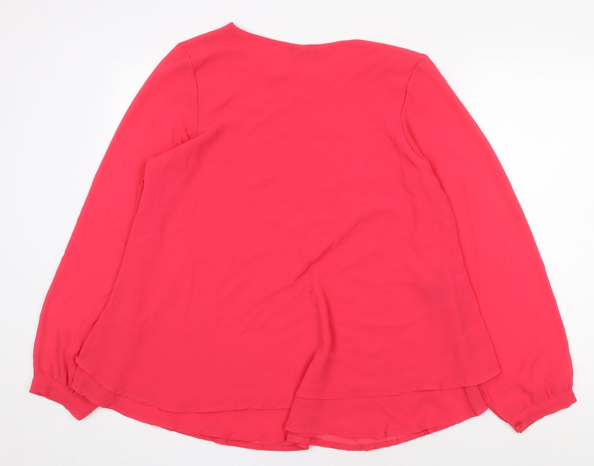 James Lakeland Womens Pink Polyester Basic Blouse Size 18 Round Neck