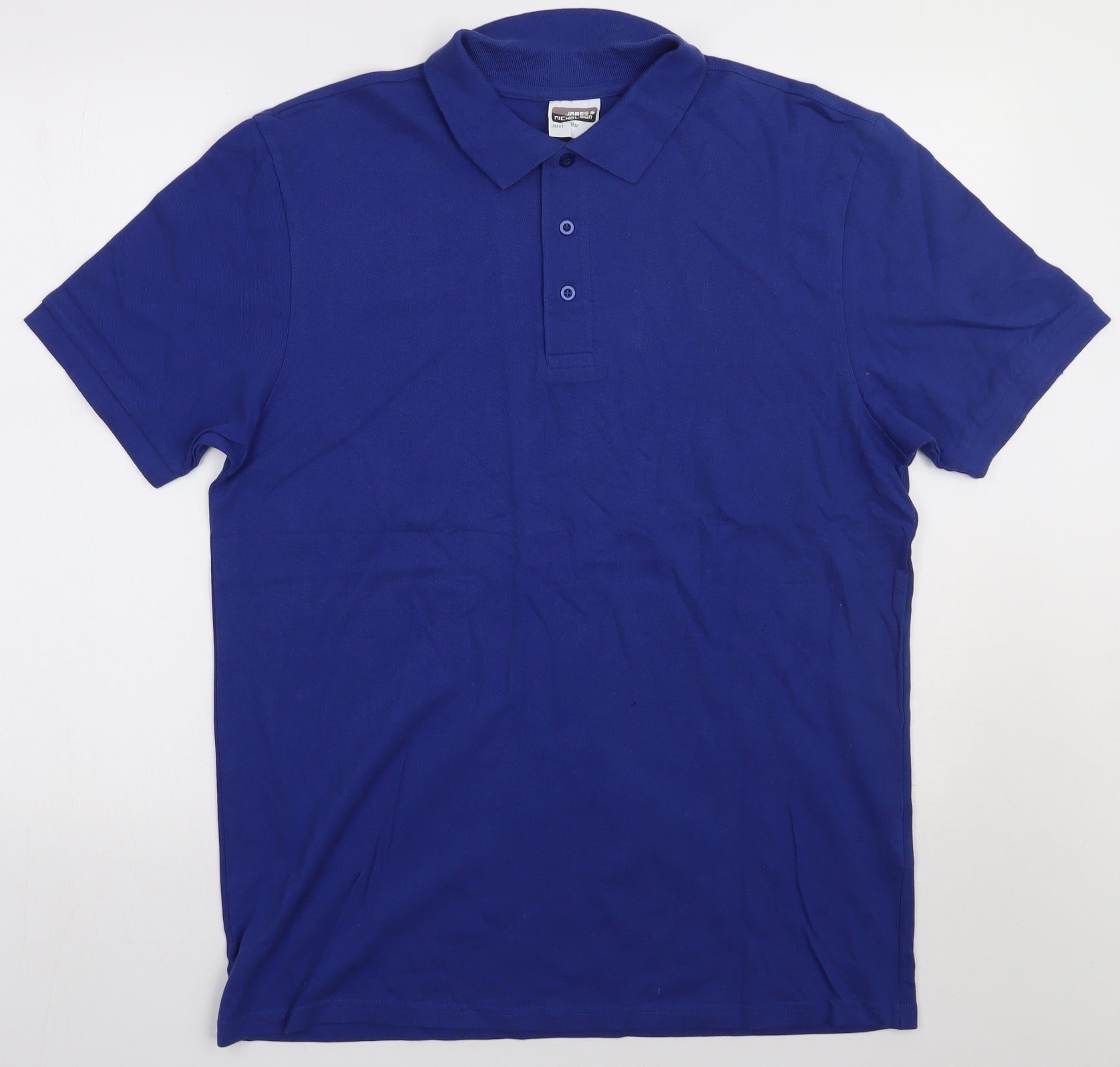 James & Nicholson Mens Blue Cotton Polo Size L Collared Button