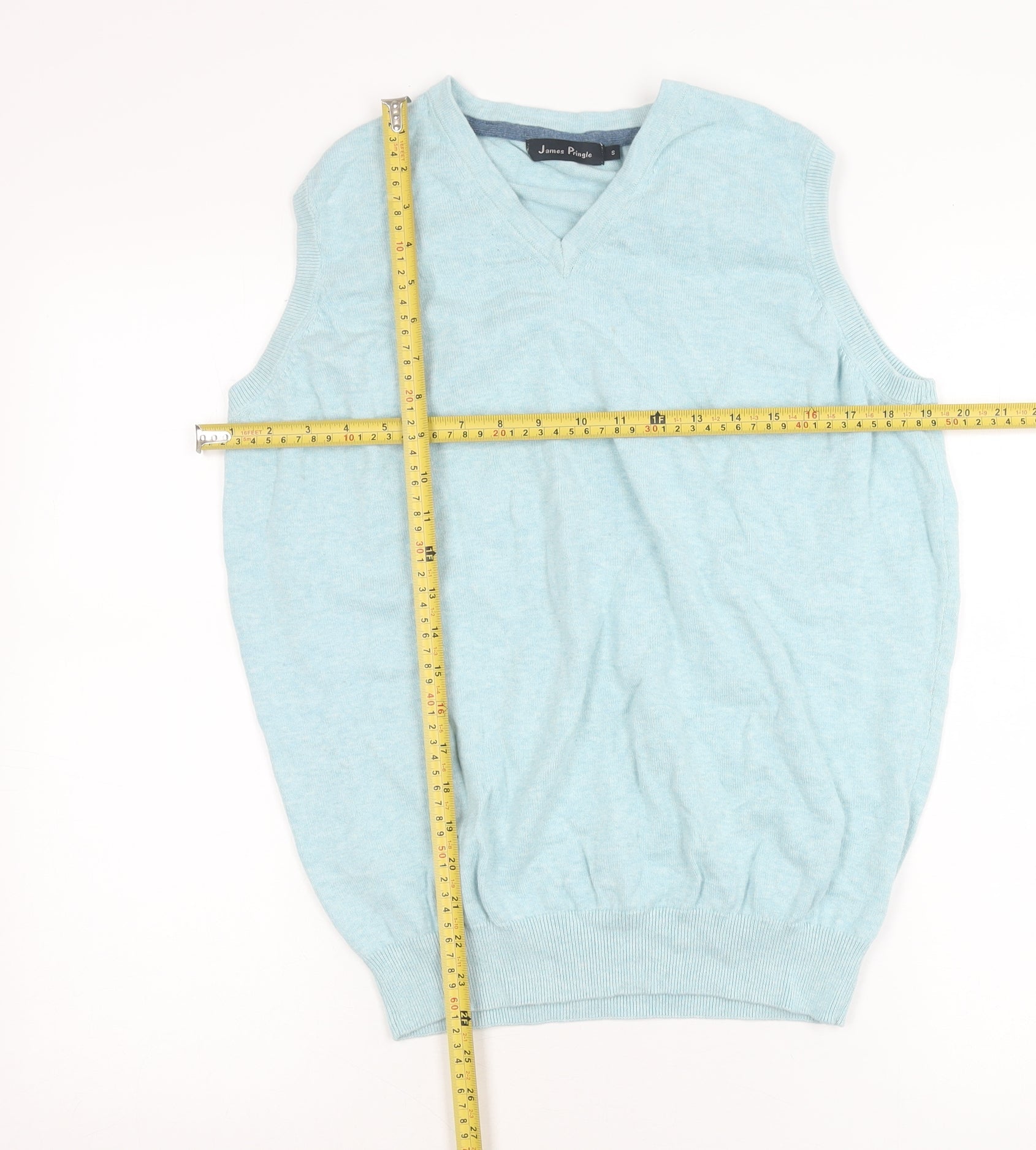 James Pringle Men’s Blue Cotton Sleeveless V-Neck Vest Jumper Size S
