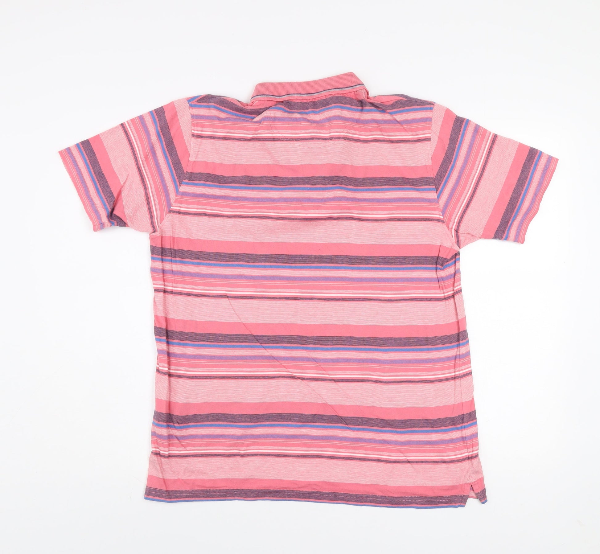 James Pringle Men’s Pink Striped Cotton Golf Polo Shirt Size M