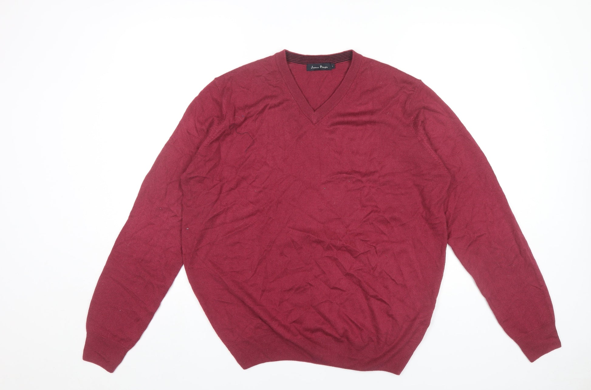 James Pringle Men’s Red V-Neck Knit Jumper L Long Sleeve Pullover