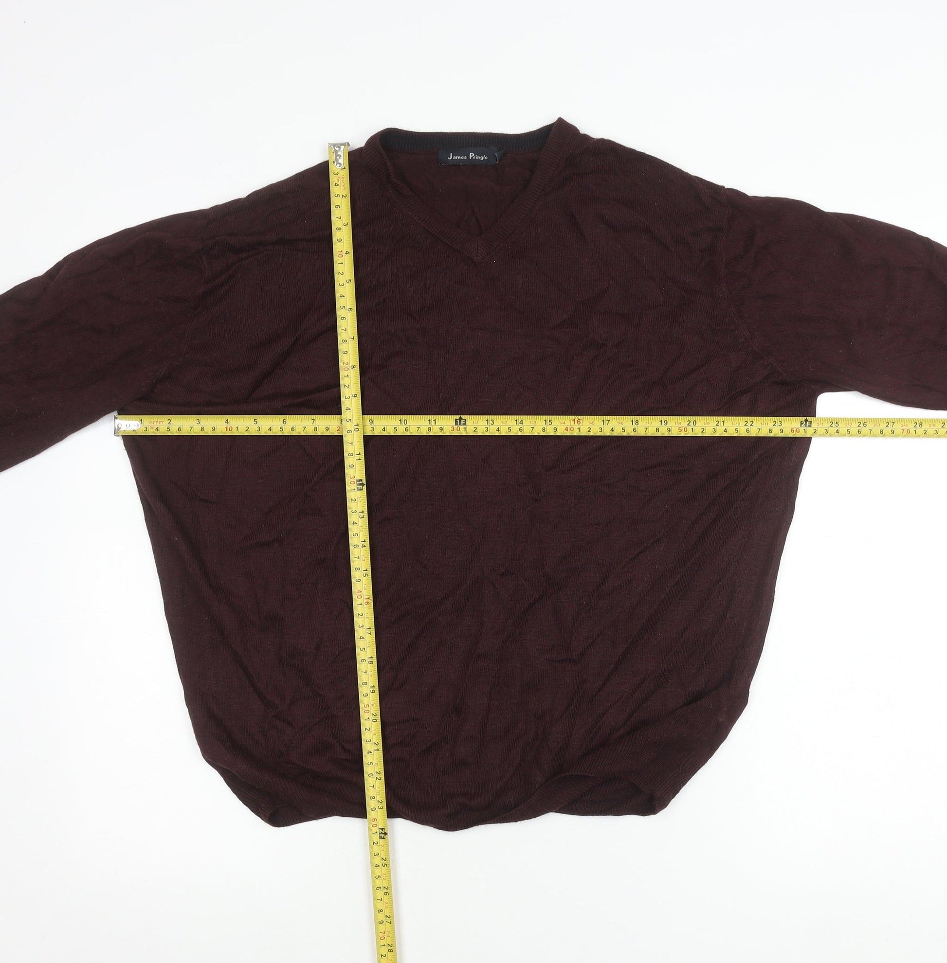 James Pringle Men's Brown M V-Neck Acrylic Pullover Jumper