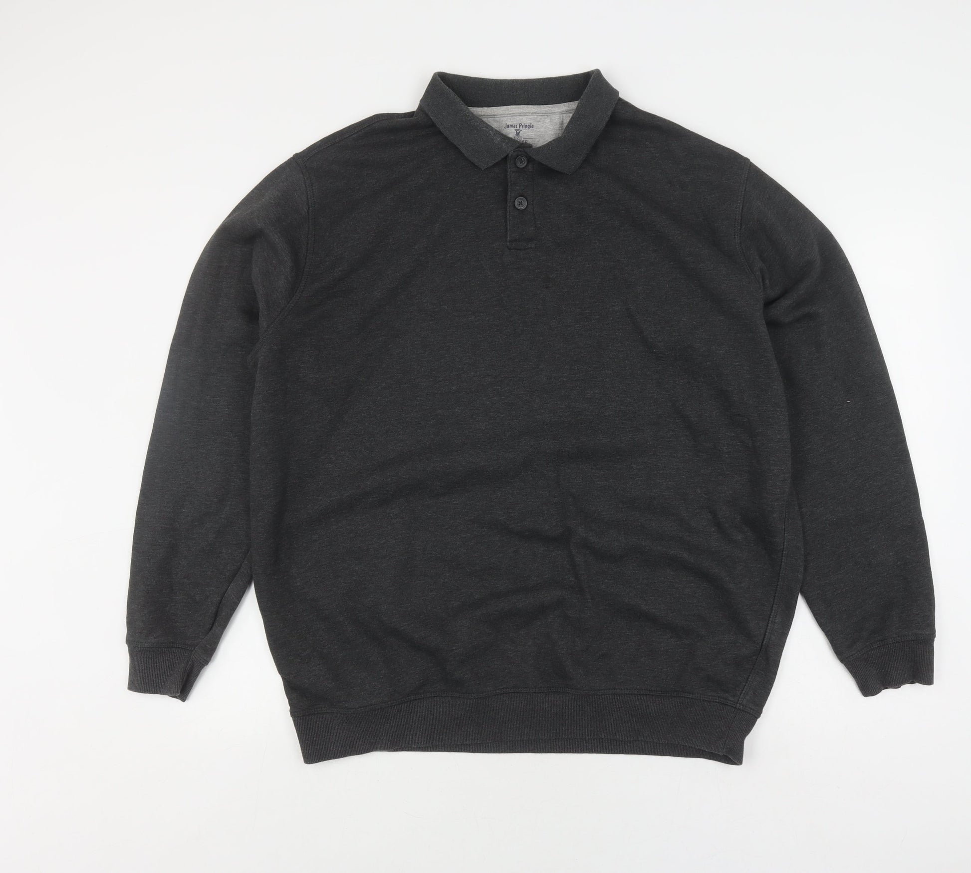 James Pringle Men's Grey 2XL Long Sleeve Polo