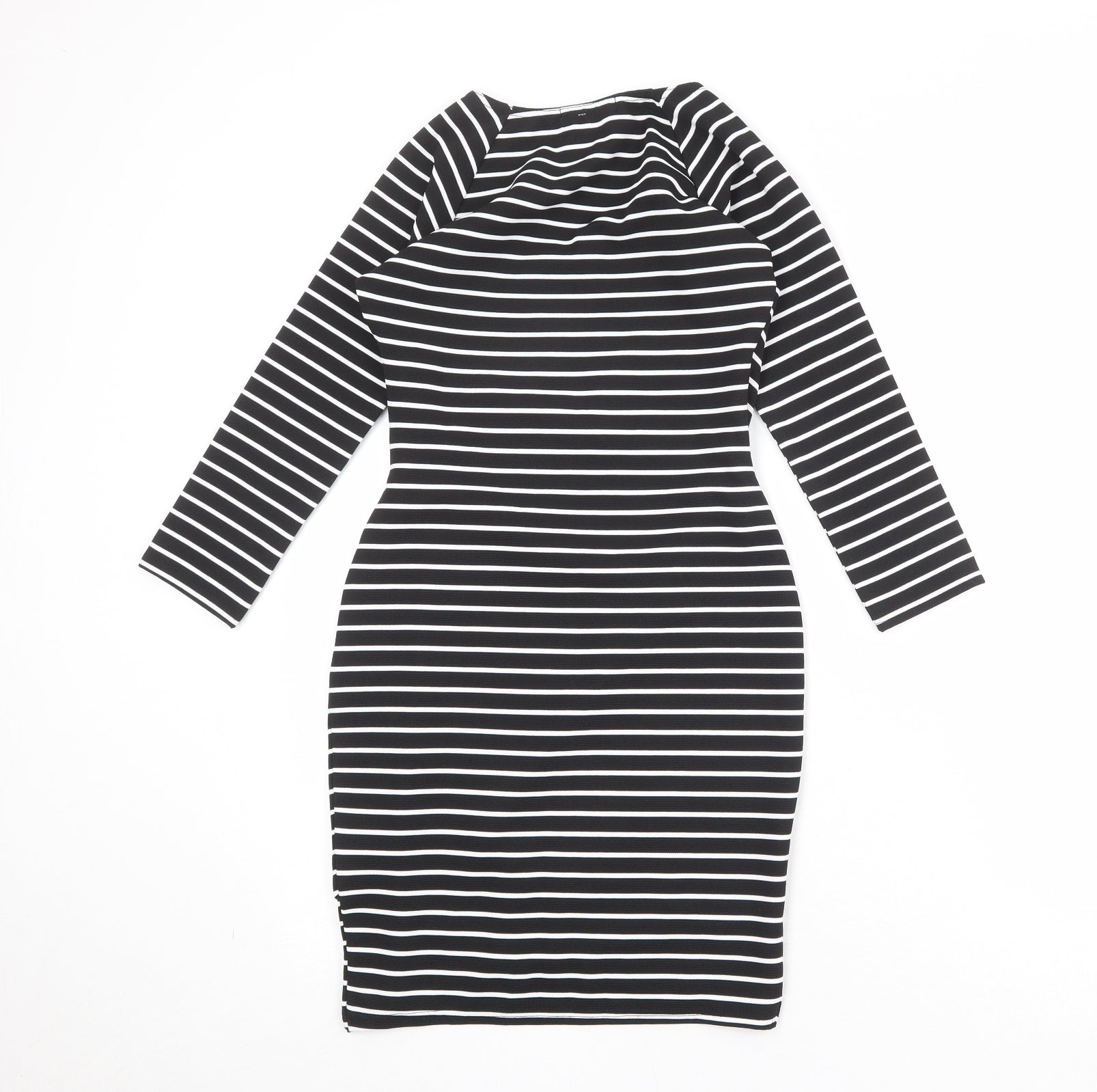 Jane Norman Womens Black Striped Polyester Shift Size 6 V-Neck Pullover