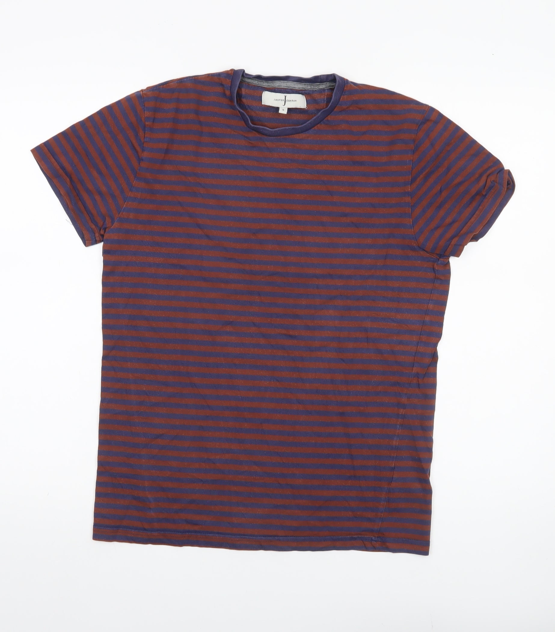 Jasper Conran Men’s Brown Blue Striped Cotton Crew Neck T-Shirt S
