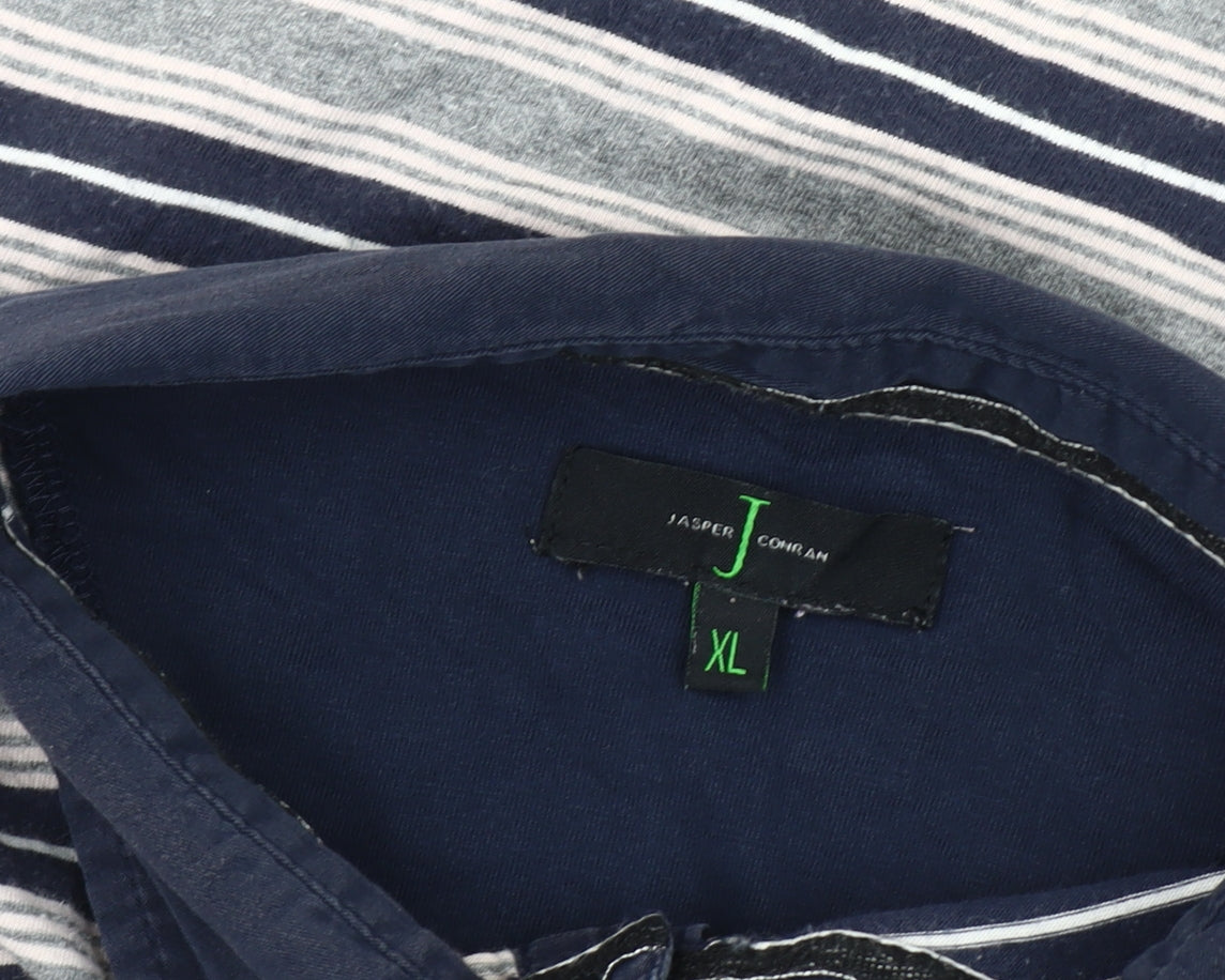 Jasper Conran Mens Blue Striped Polo Shirt XL Cotton Short Sleeve