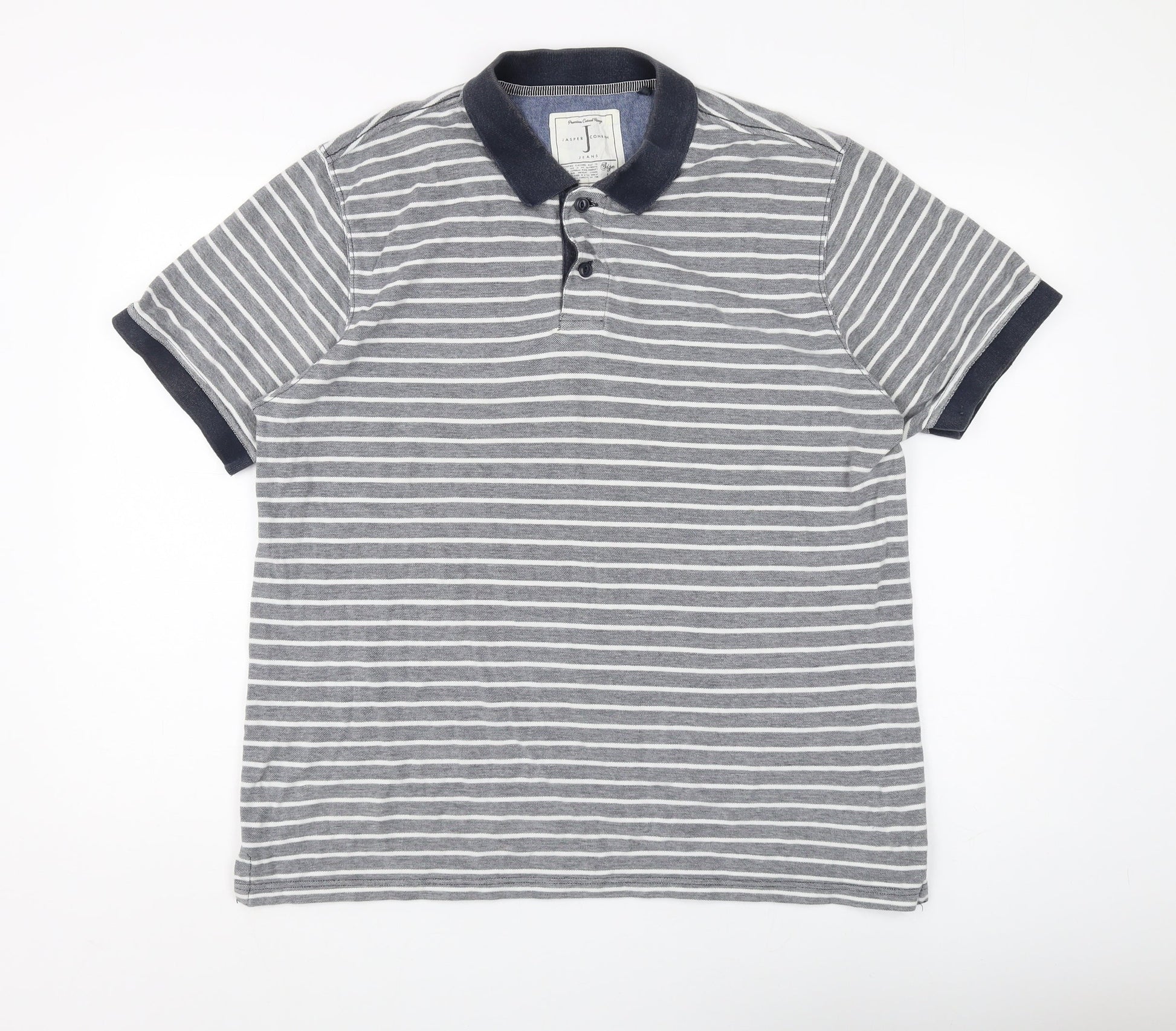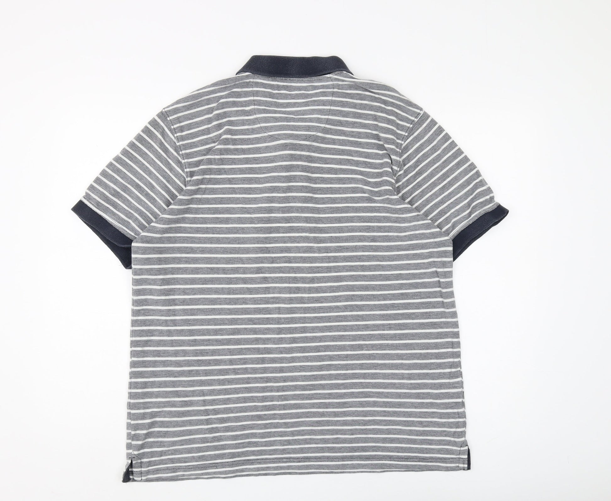 Jasper Conran Men's Grey Striped Cotton Polo L
