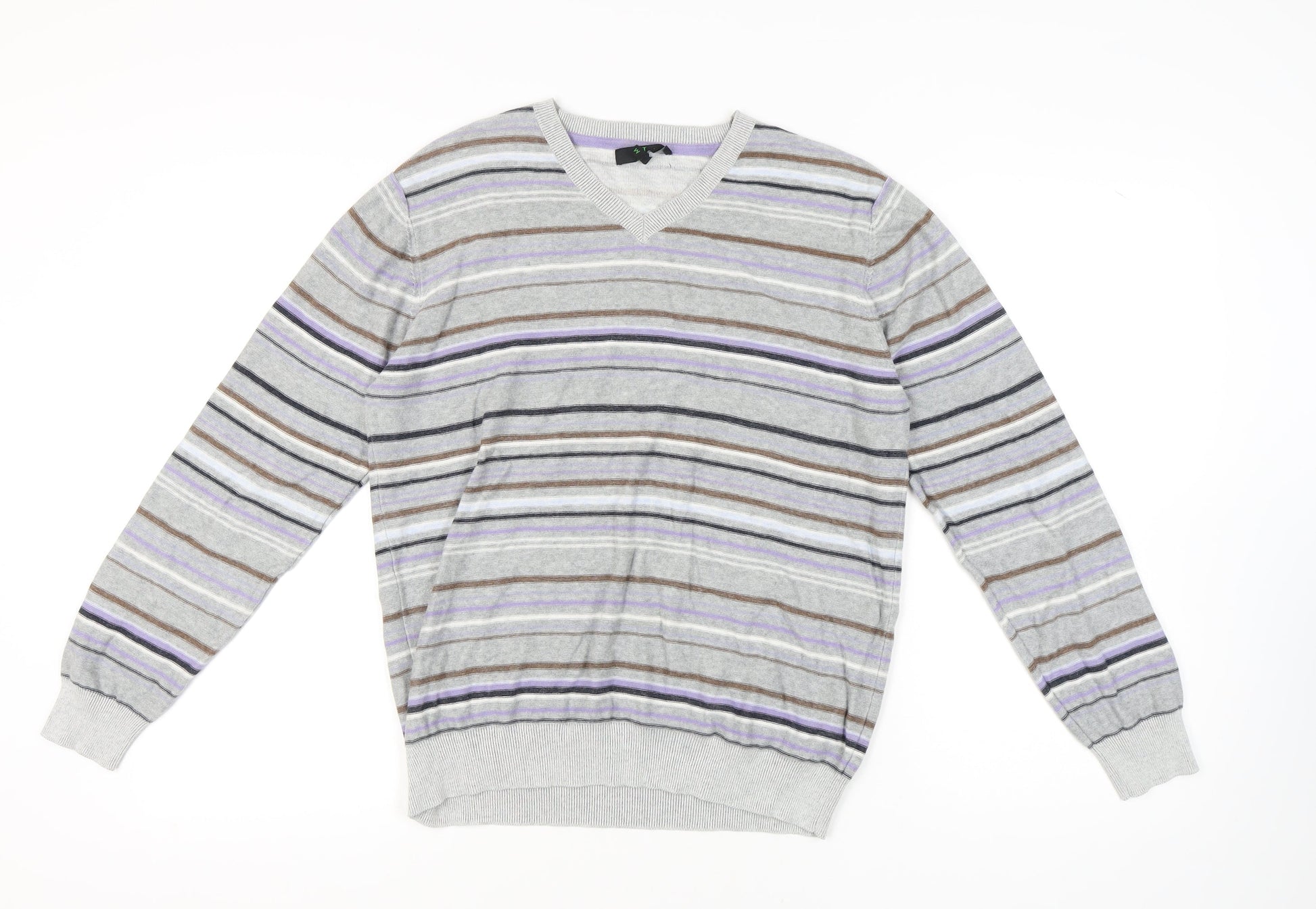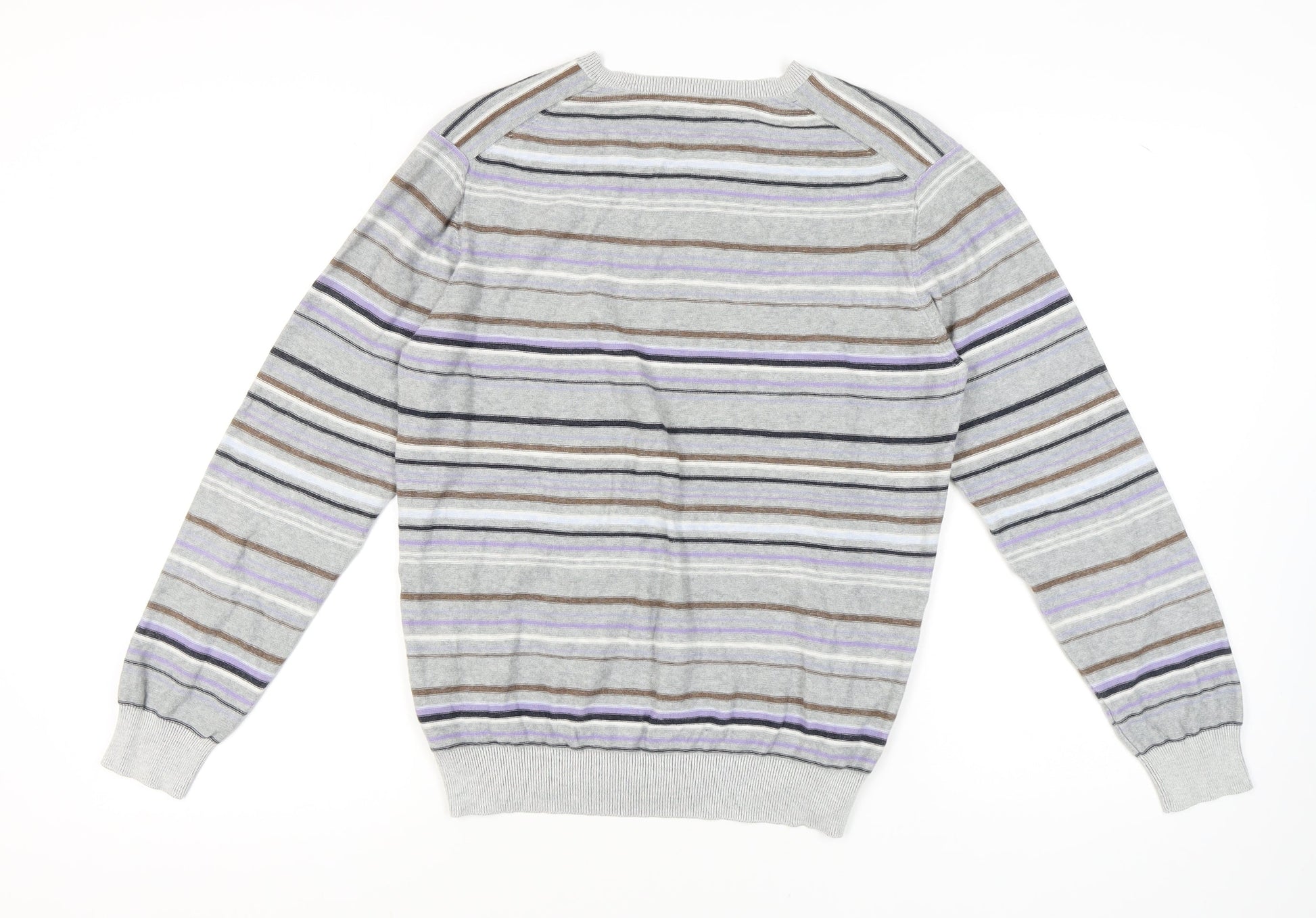 Jasper Conran Men's Grey Striped Pullover Jumper M