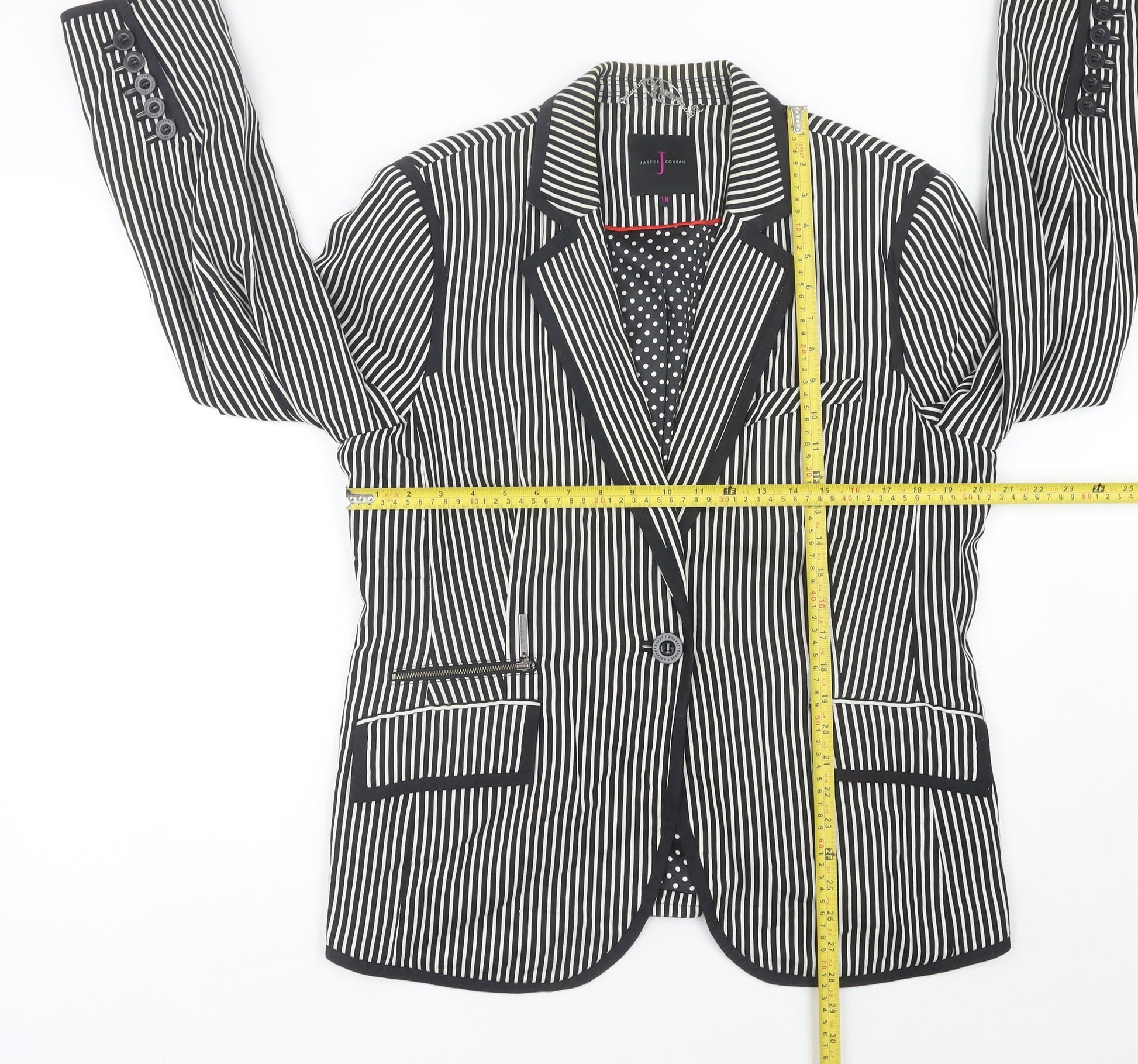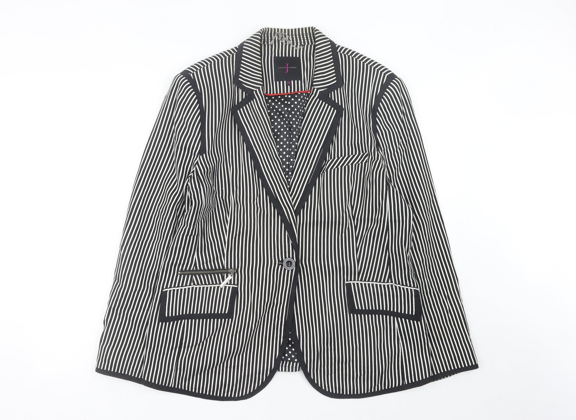 Jasper Conran Women Black Striped Blazer Jacket Size 18