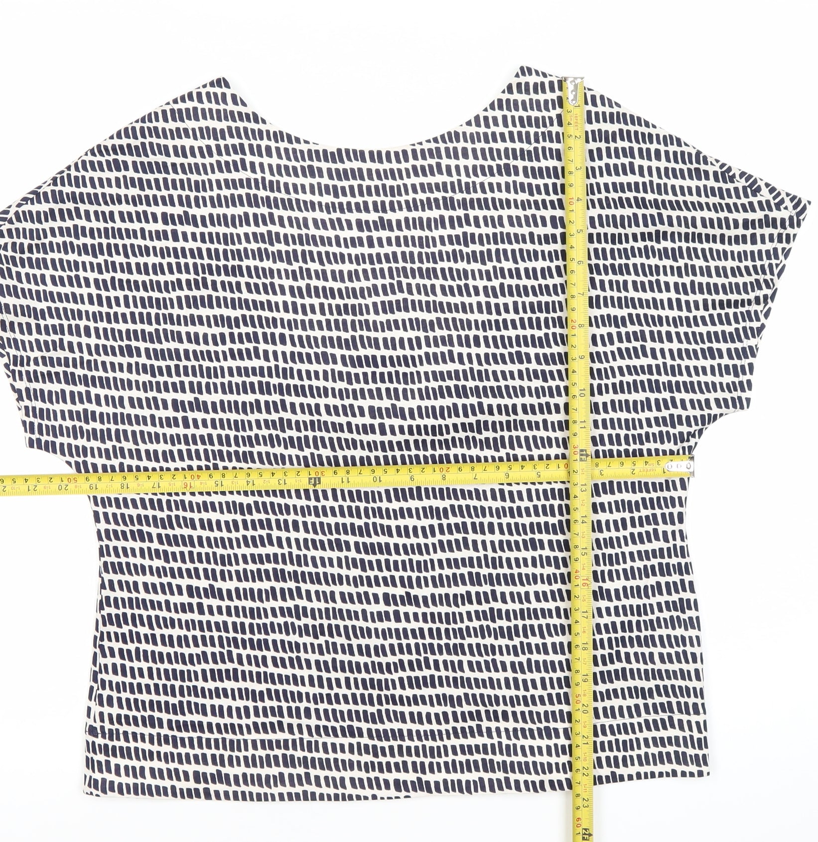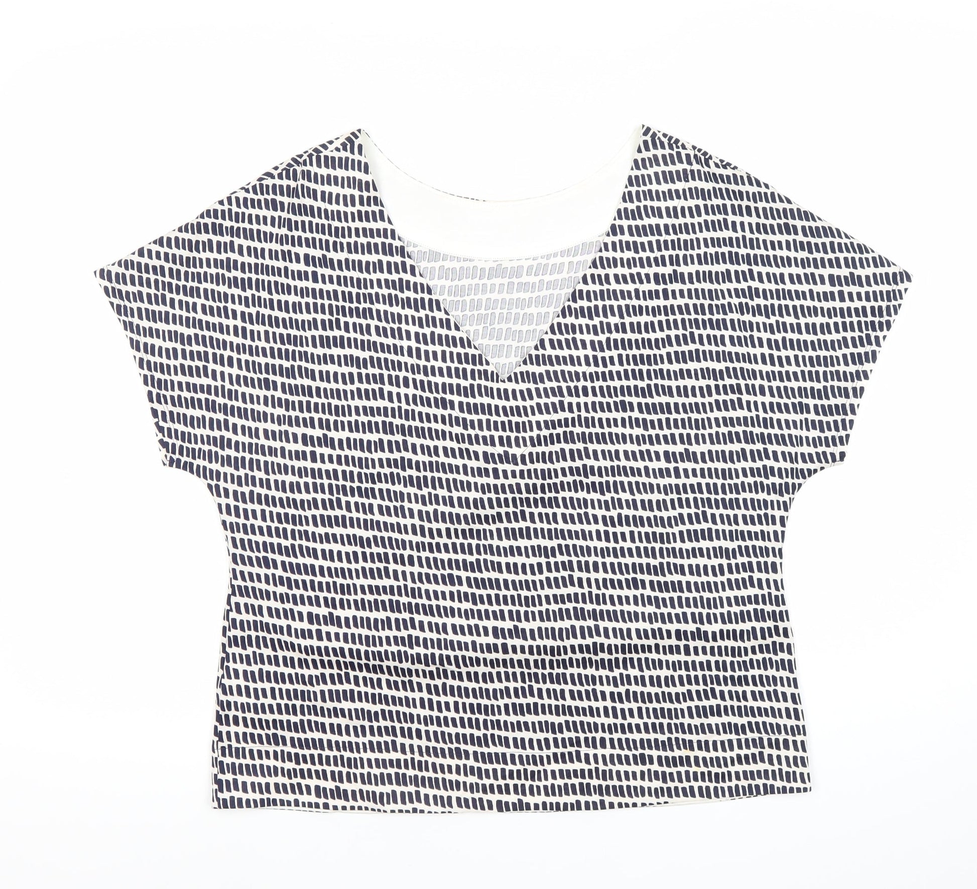 Jasper Conran Women’s White Geometric V-Neck Cotton T-Shirt Size 10