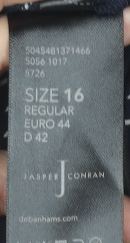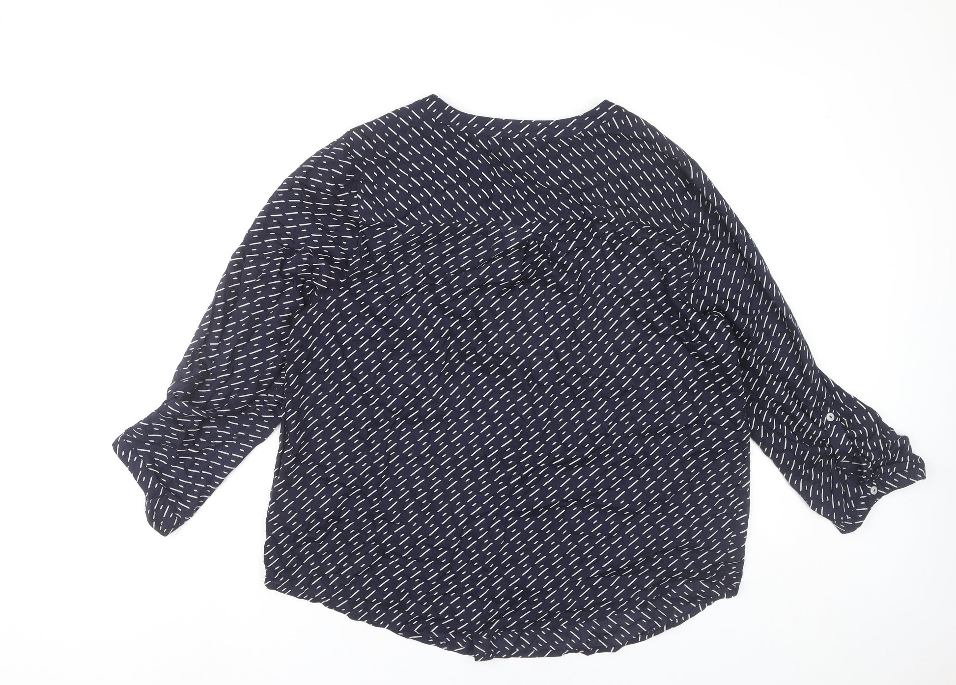 Jasper Conran Womens Blue Geometric Blouse Size 16 V-Neck 3/4 Sleeve