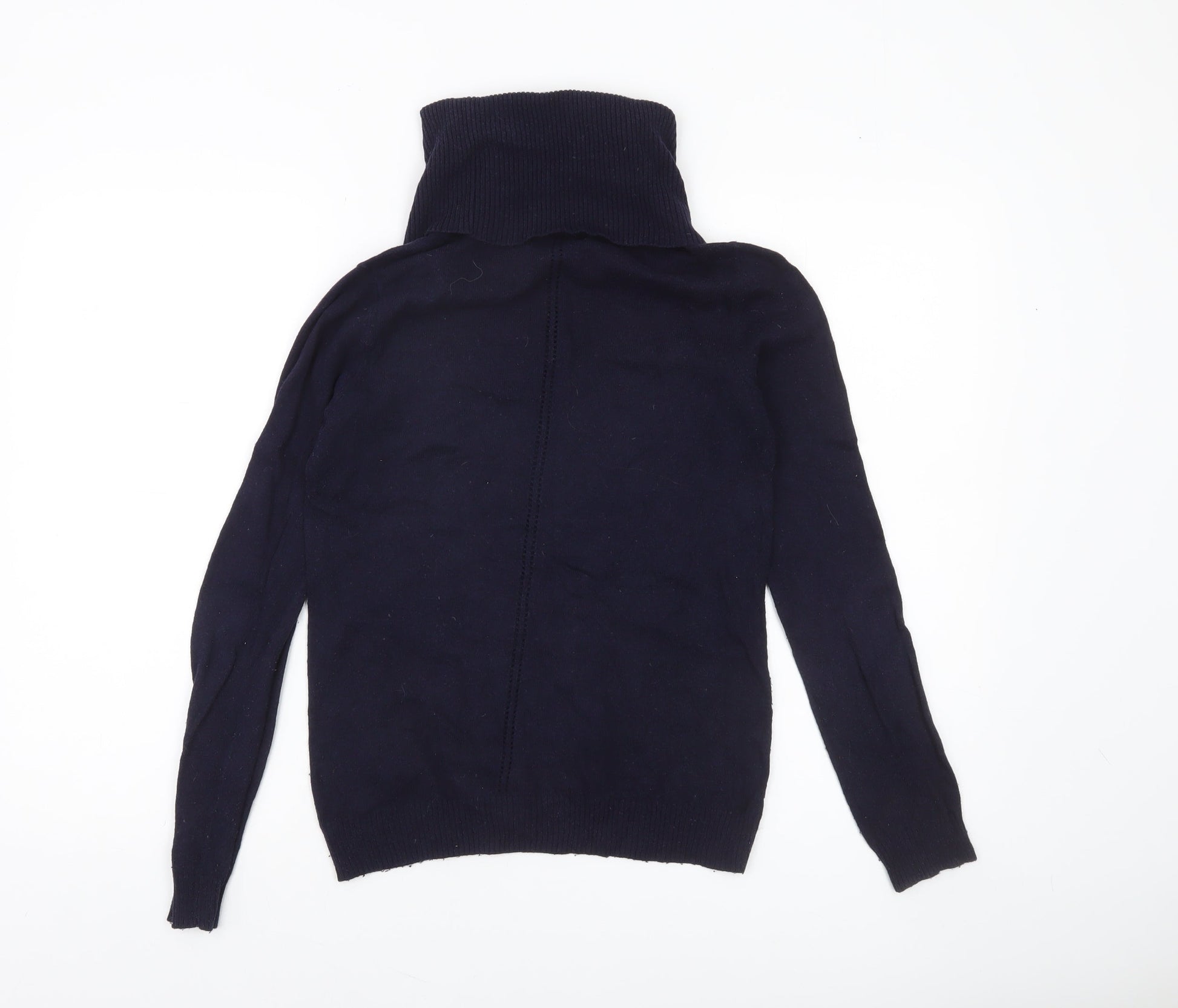 Jasper Conran Women's Blue Roll Neck Cotton Blend Jumper Size 8