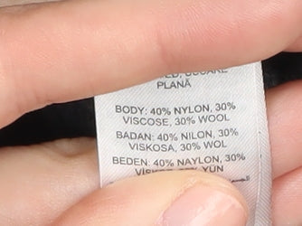 - Material Breakdown: 40% Nylon 30% Viscose 30% Wool