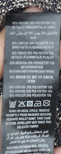 - Material Breakdown: 62% Viscose 25% Polyester 13% Metallic