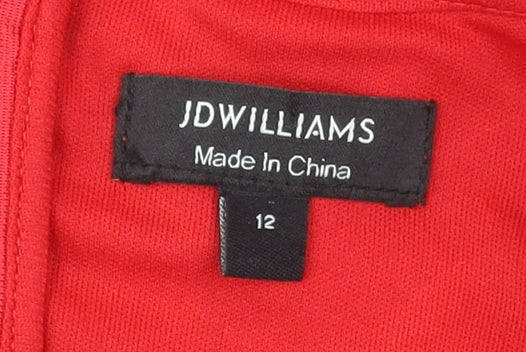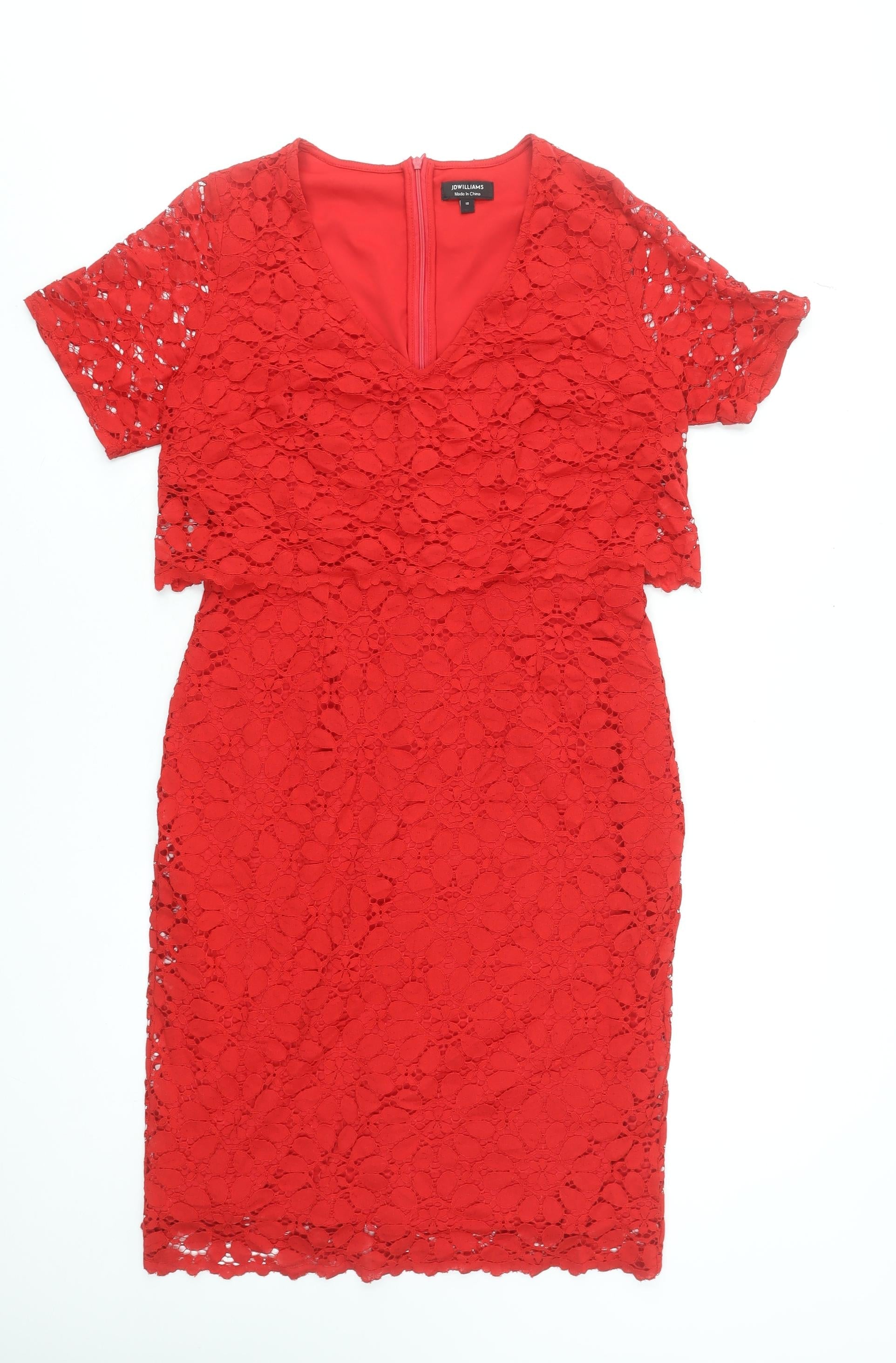 JD Williams Women's Red Lace Sheath Dress Size 12 Party V-Neck
