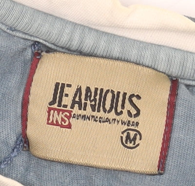 Jeanious Men's Blue Graphic Print Cotton T-Shirt Size M La Poderosa Design