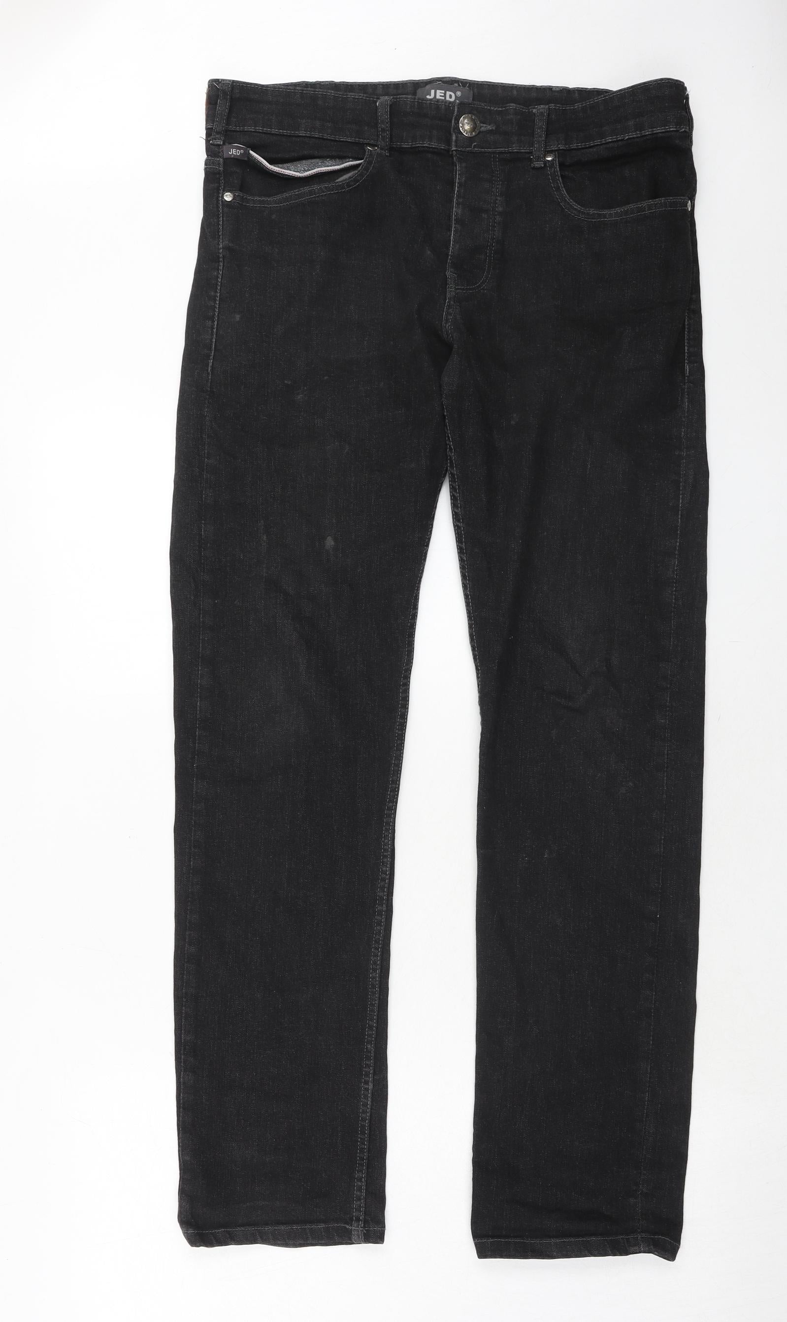 JED Mens Black Cotton Straight Jeans Size 32 in Regular Button