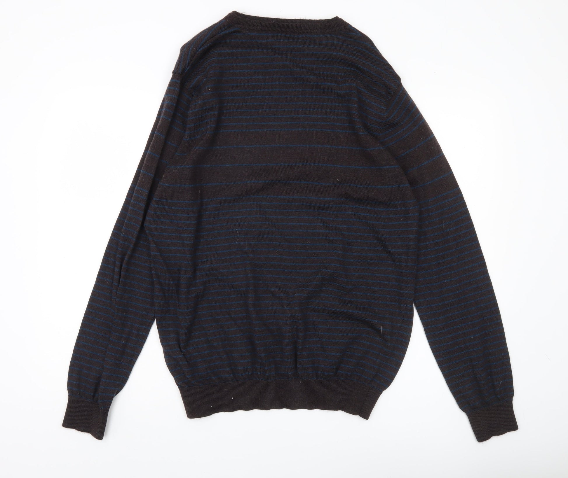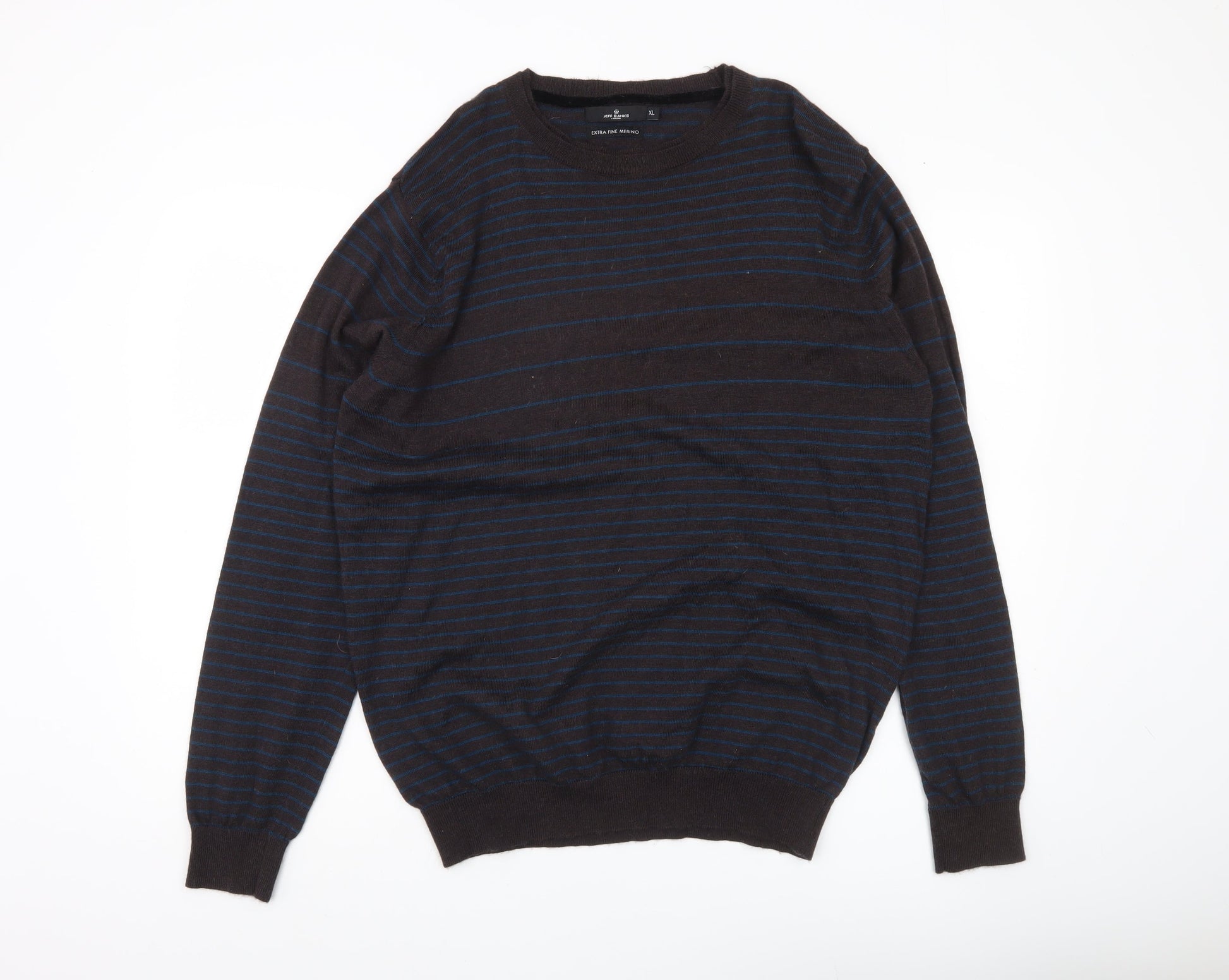 Jeff Banks Men’s Brown XL Striped Merino Wool Pullover Jumper