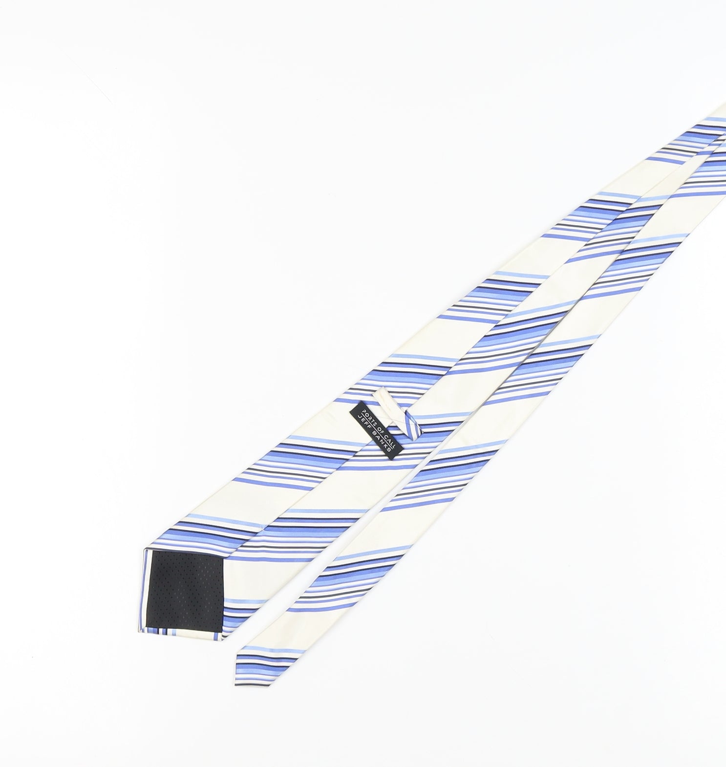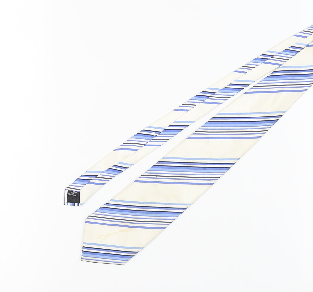 Jeff Banks Men's Blue Ivory Striped Silk Tie