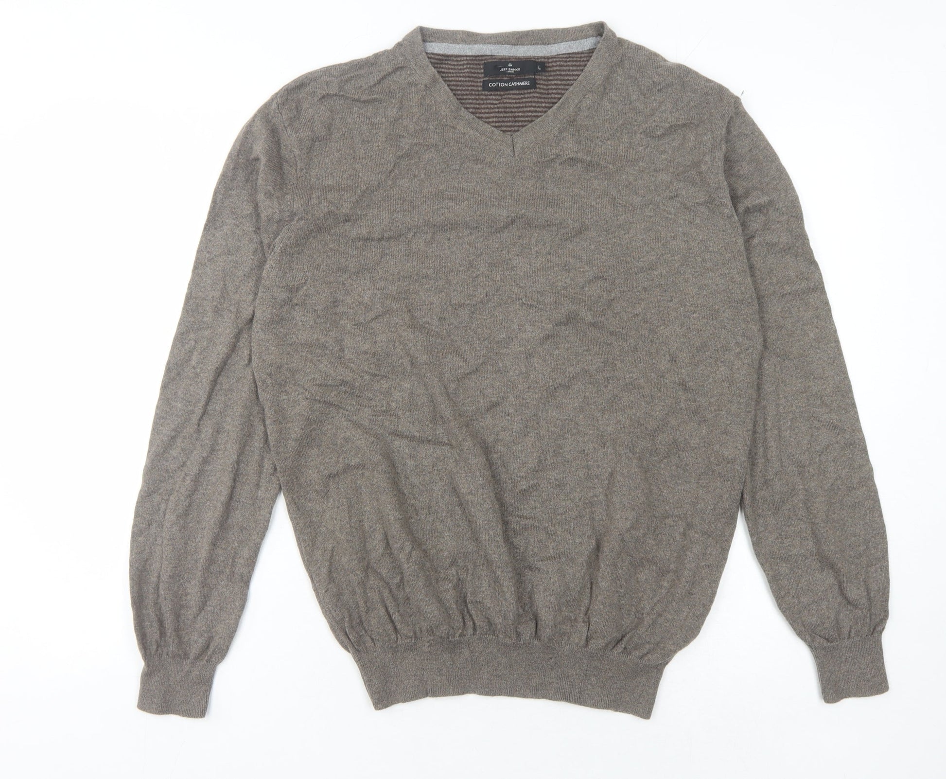 Jeff Banks Men's Brown V-Neck Knit Pullover L