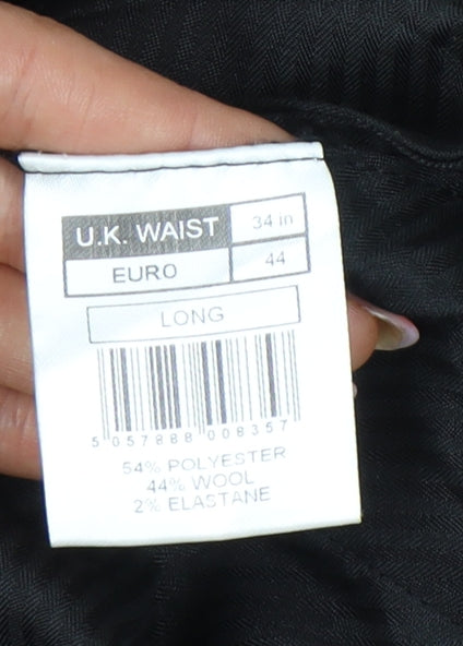 Jeff Banks Men's Grey Check Dress Trousers 34L Wool Blend Straight Fit