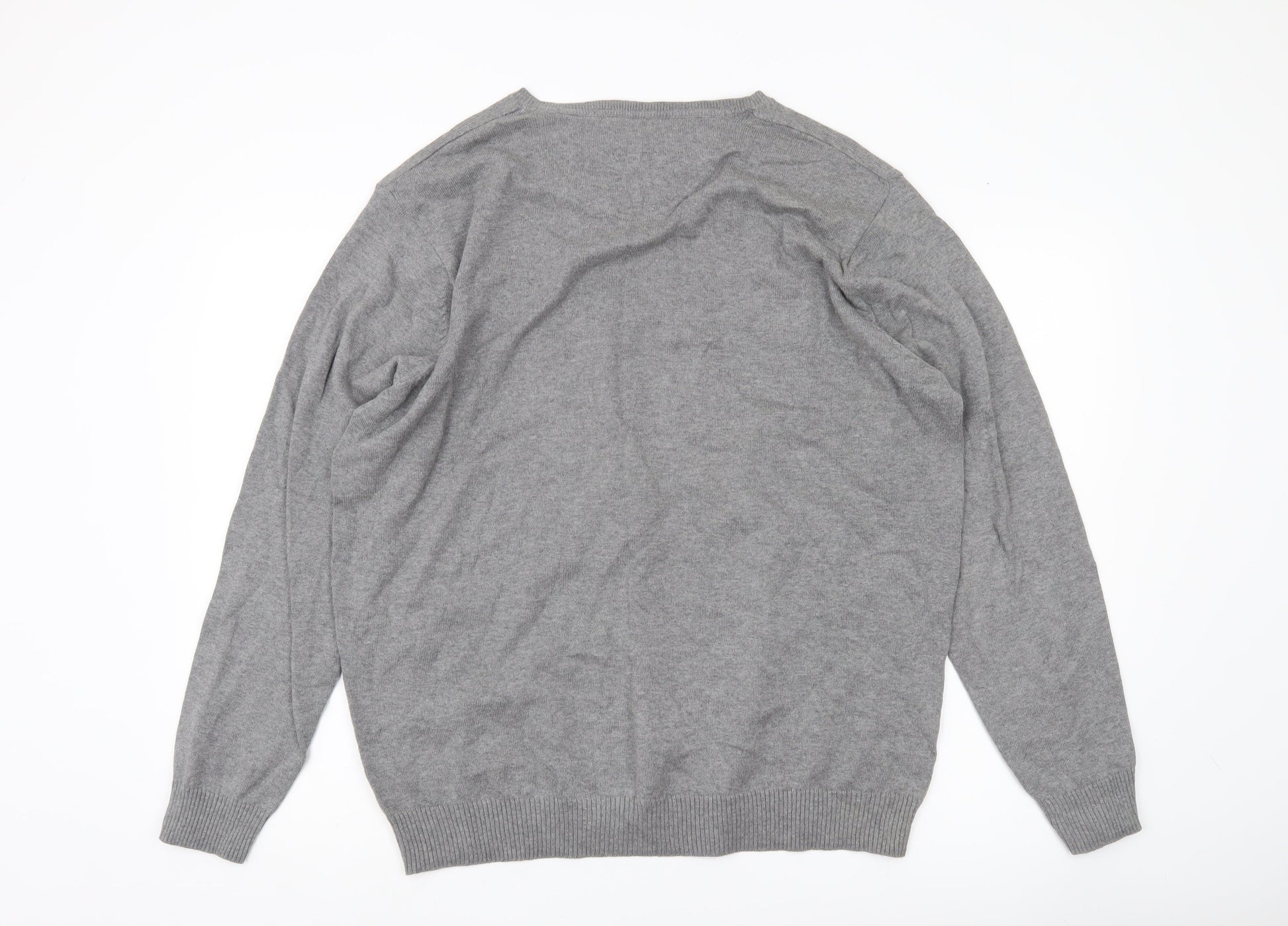Jeff Banks Men's Grey XL V-Neck Cotton Pullover Jumper