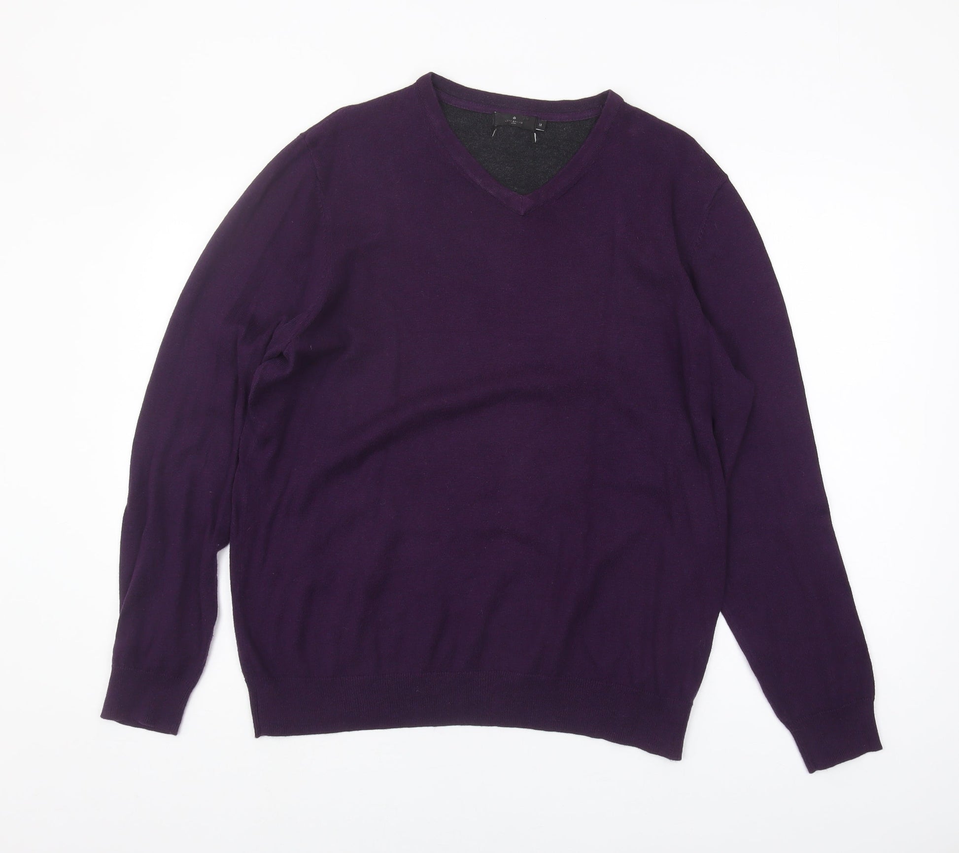 Jeff Banks Men's Purple V-Neck Cotton Jumper Medium