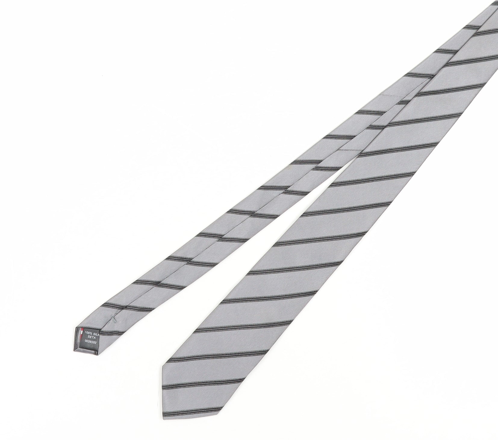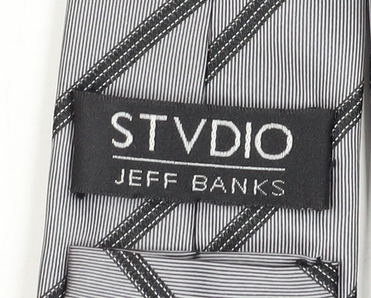 Jeff Banks Stvdio Men's Silver Slim Silk Striped Tie