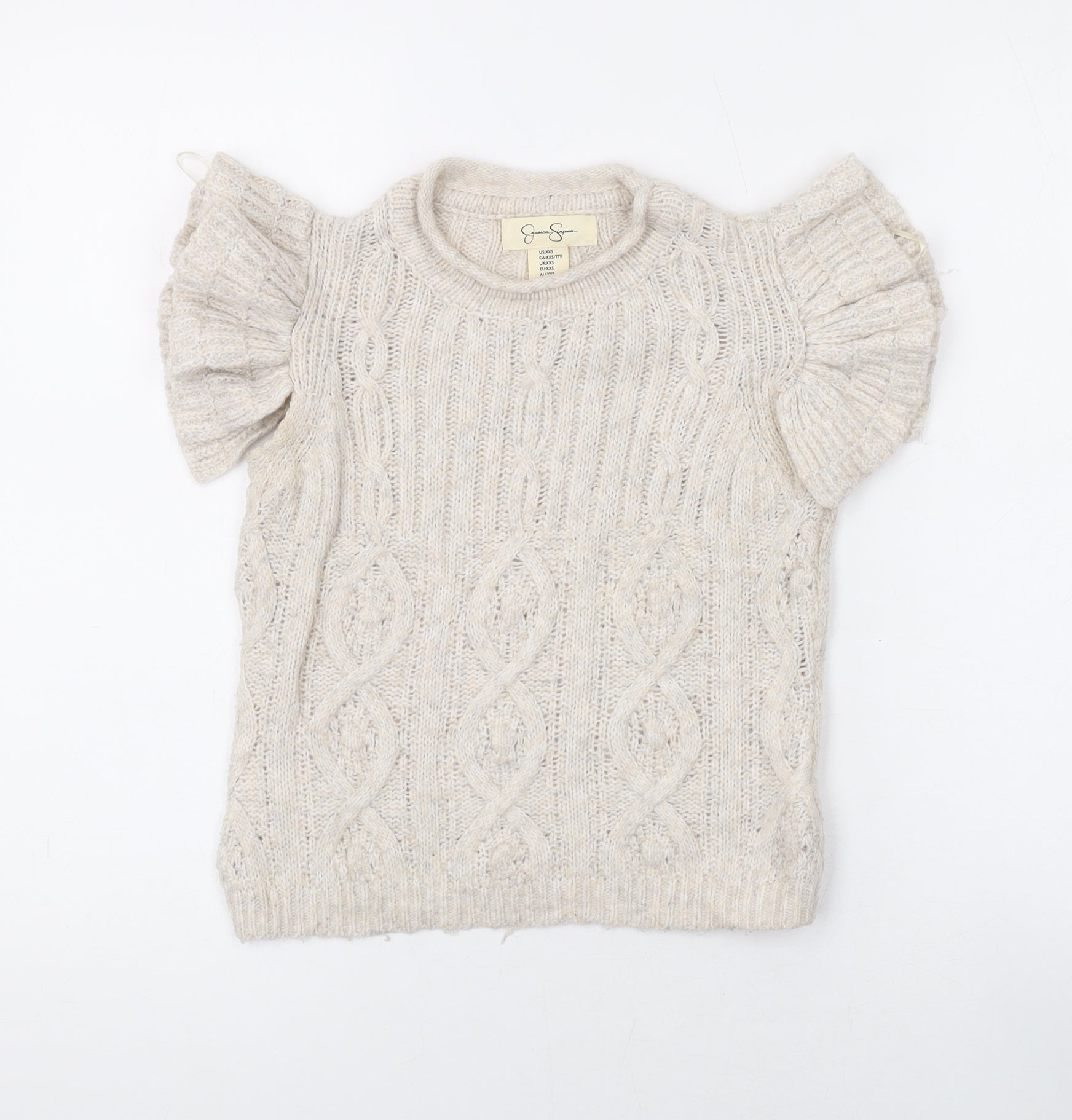 Jessica Simpson Womens Beige Round Neck Polyester Pullover Jumper Size 2XS