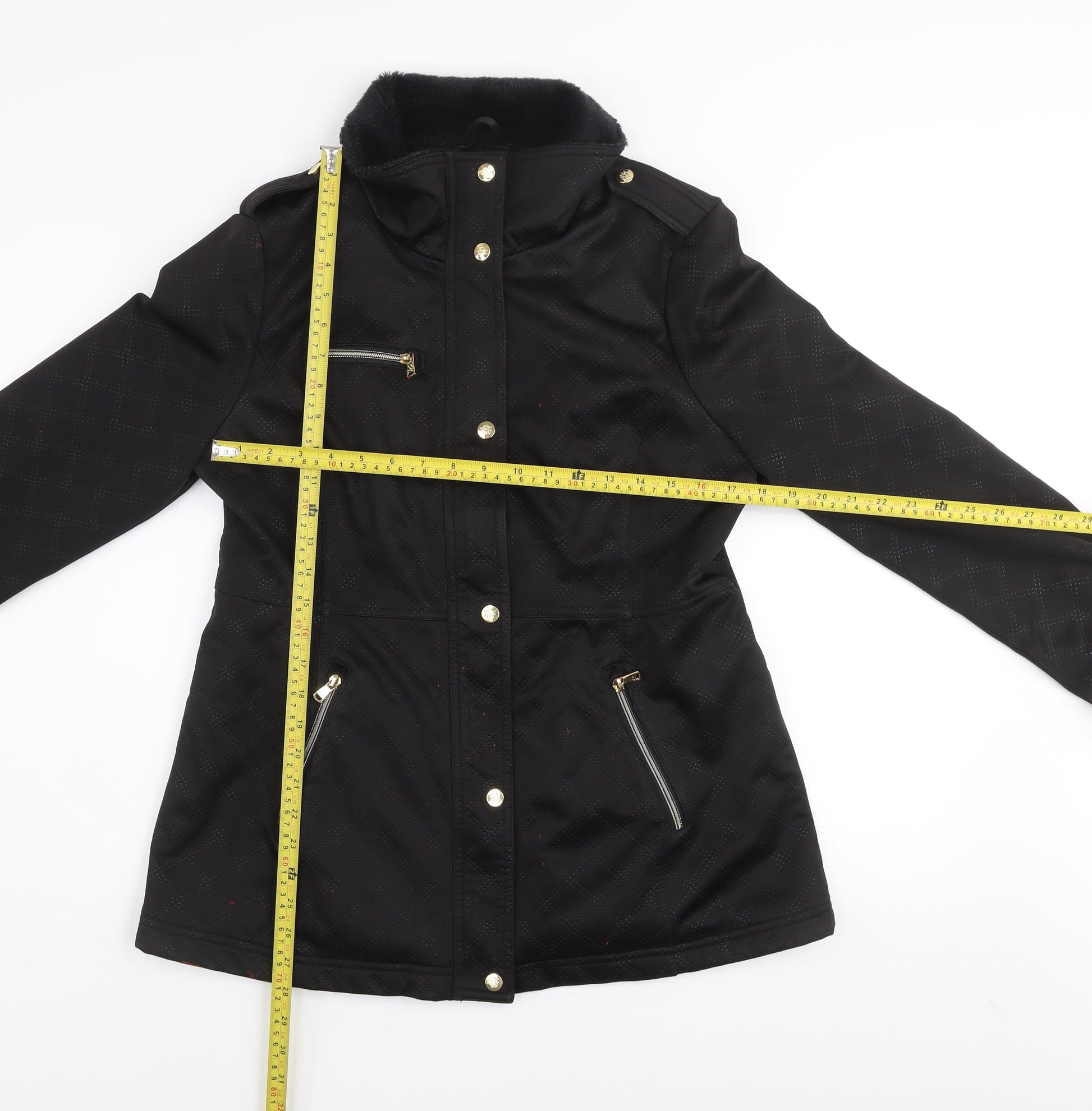 Jessica Simpson Womens Black L Parka Jacket with Fur Trim & Gold Zips