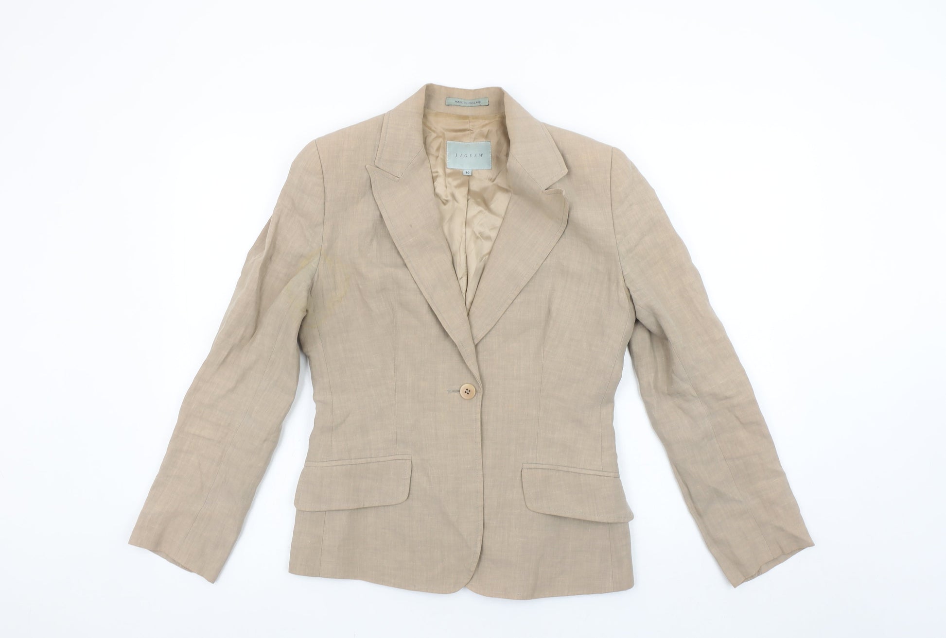 Jigsaw Women Beige Linen Single-Breasted Blazer UK 10