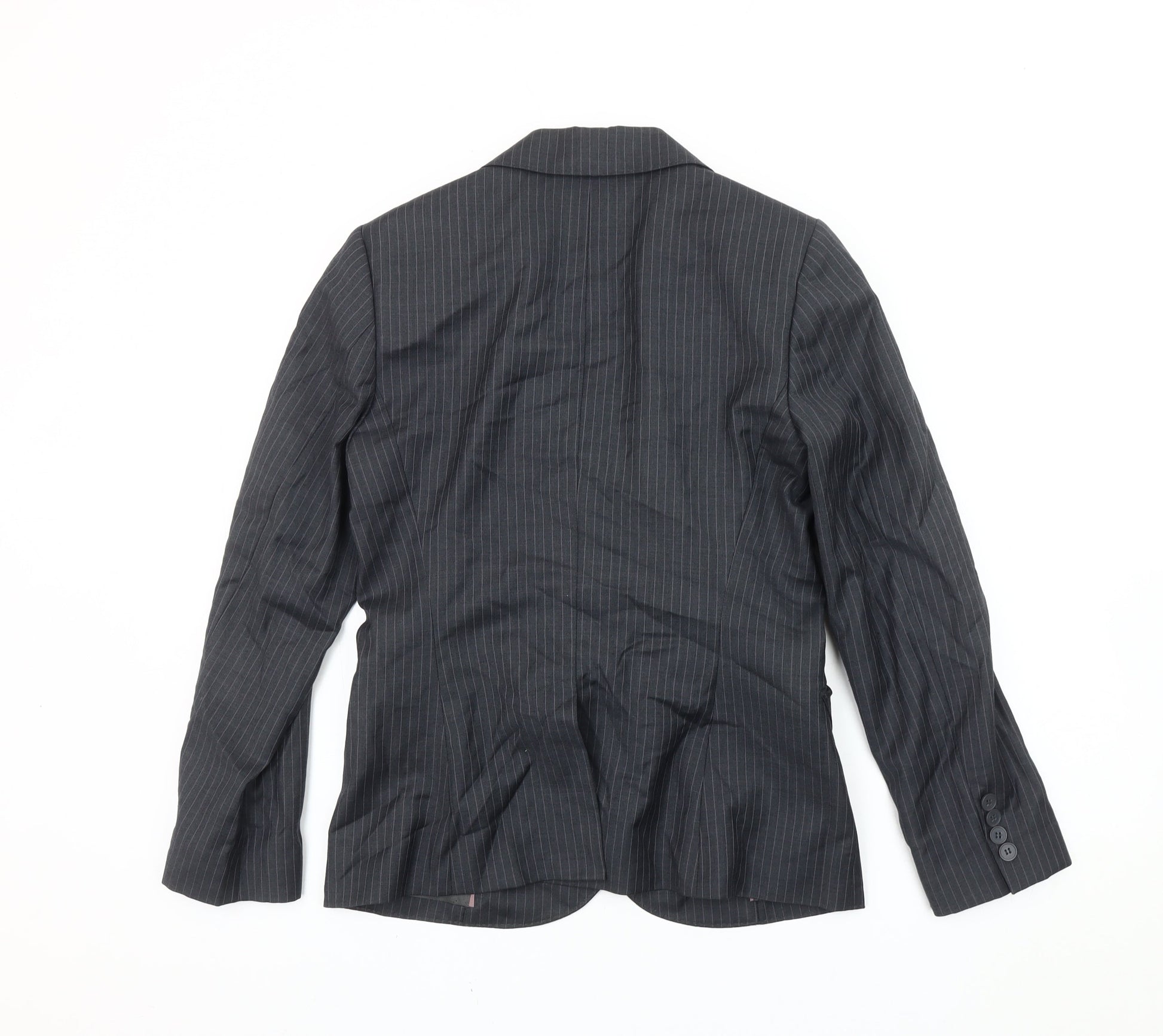 Jigsaw Womens Black Pinstripe Wool Single-Breasted Suit Jacket Size 10