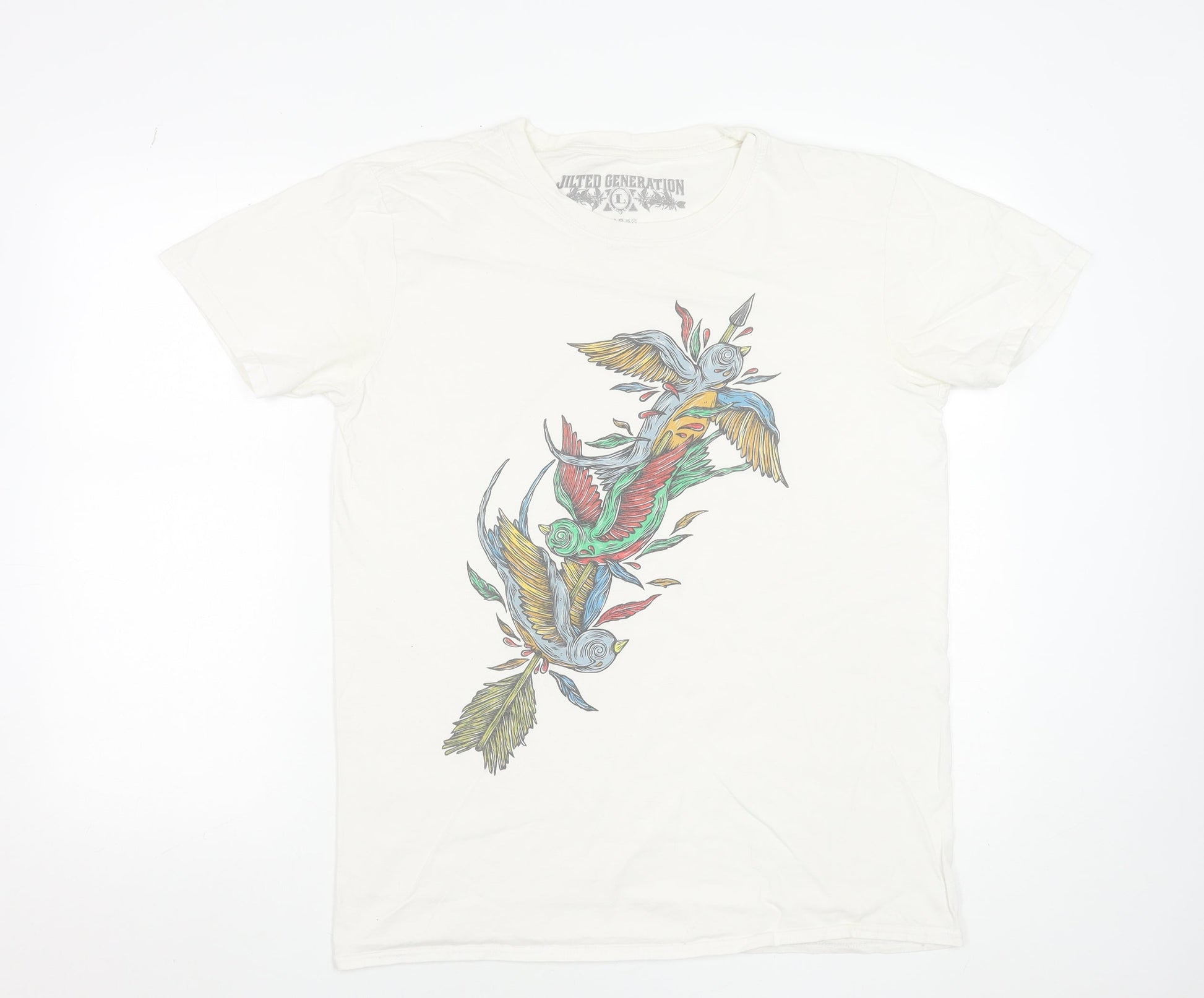 Jilted Generation Men's White Cotton Graphic Bird Art T-Shirt L