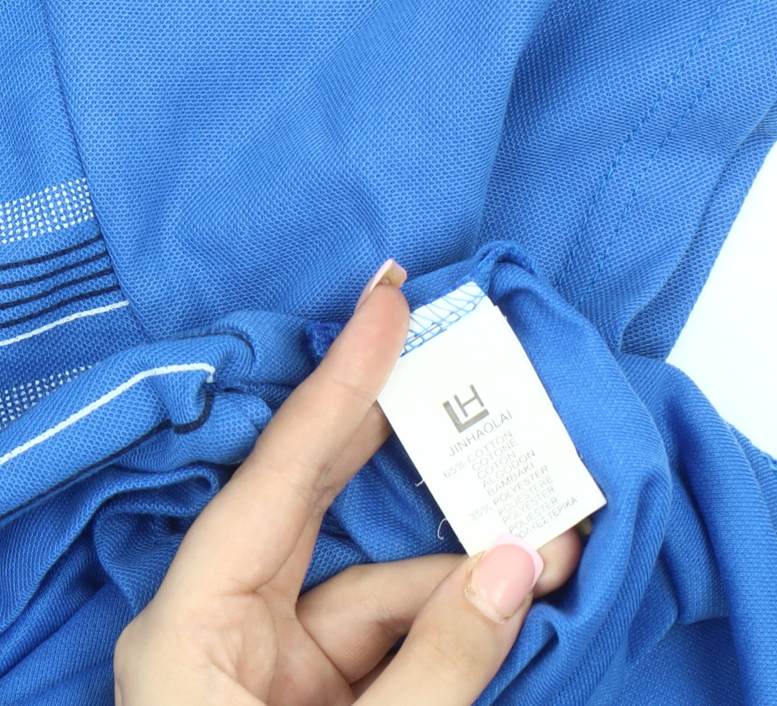 Jinhaolai Men's Blue Striped Polo Shirt L
