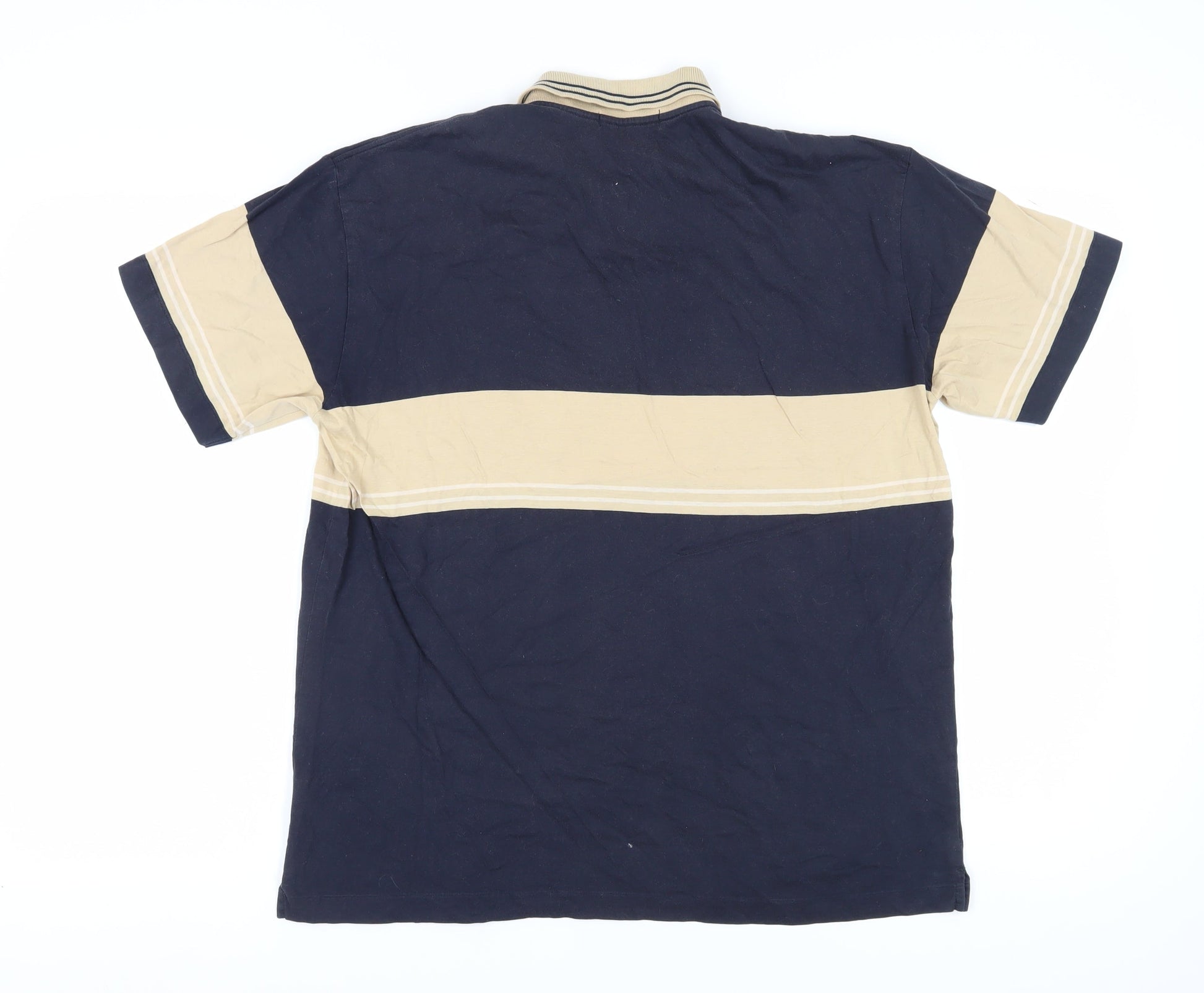 Jockey Men's Beige Blue Polo Shirt M Colourblock Casual