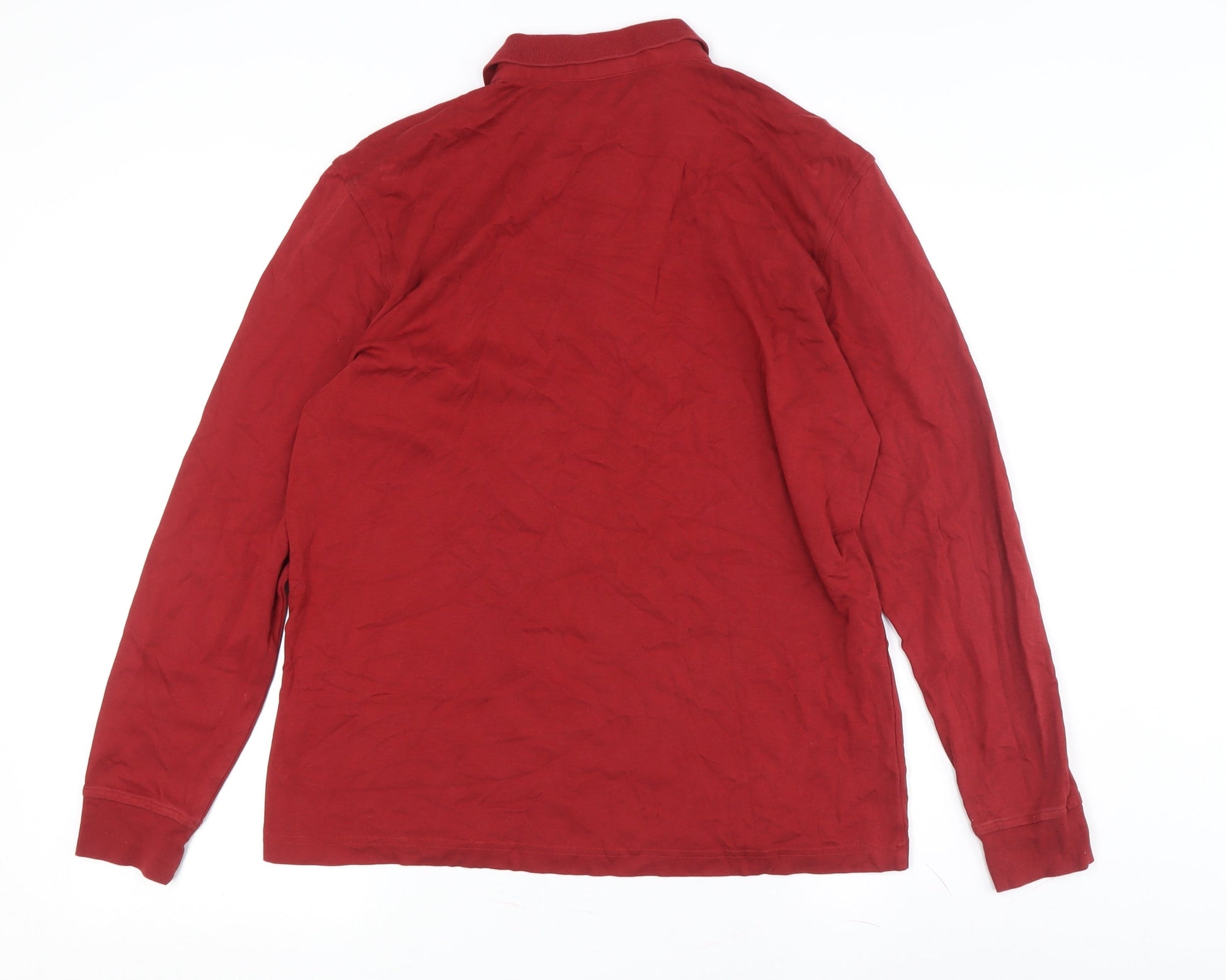 Jockey Men's Red Long Sleeve Polo Medium Cotton
