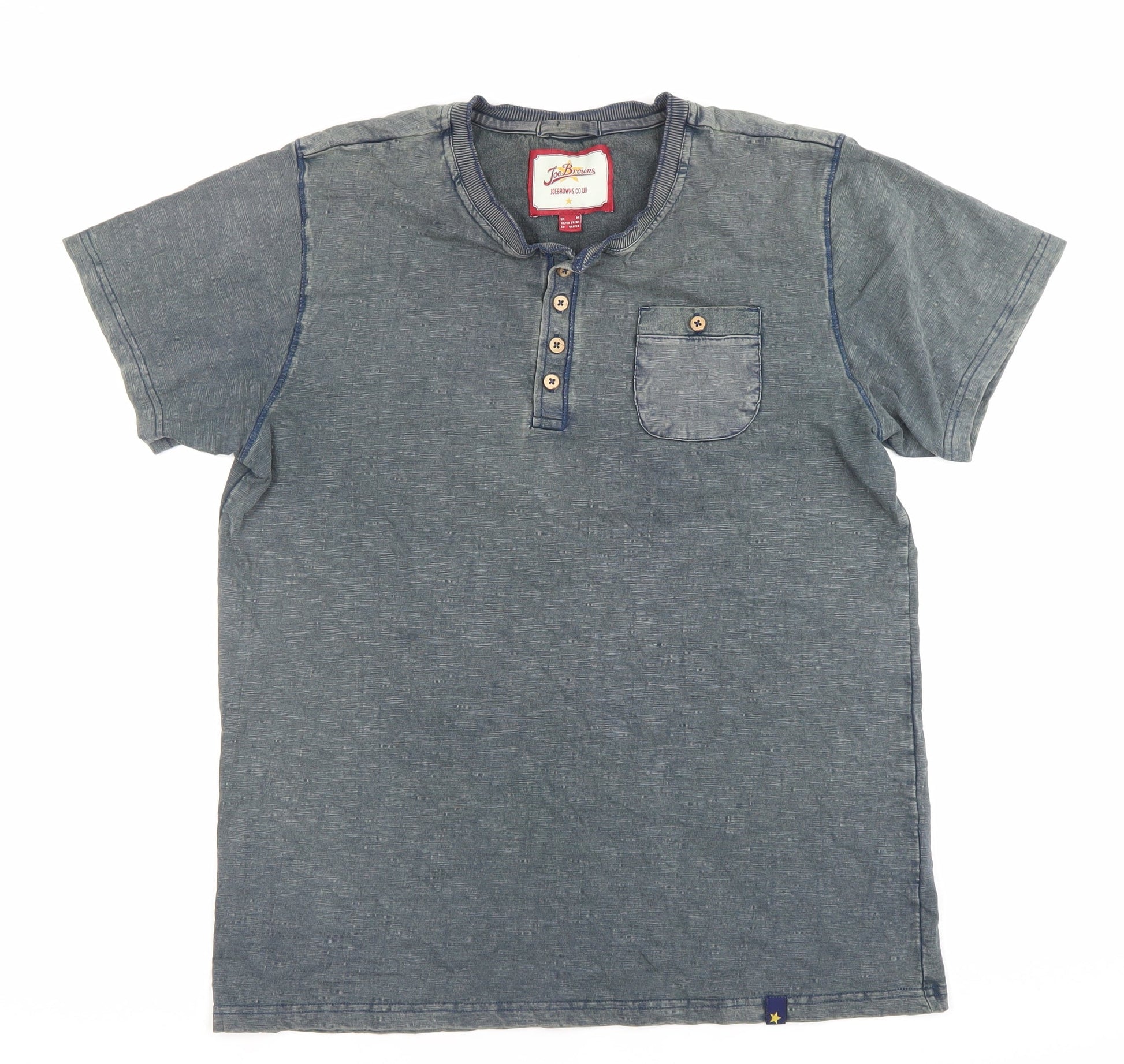 Joe Browns Men’s Blue Henley Short Sleeve Cotton T-Shirt M