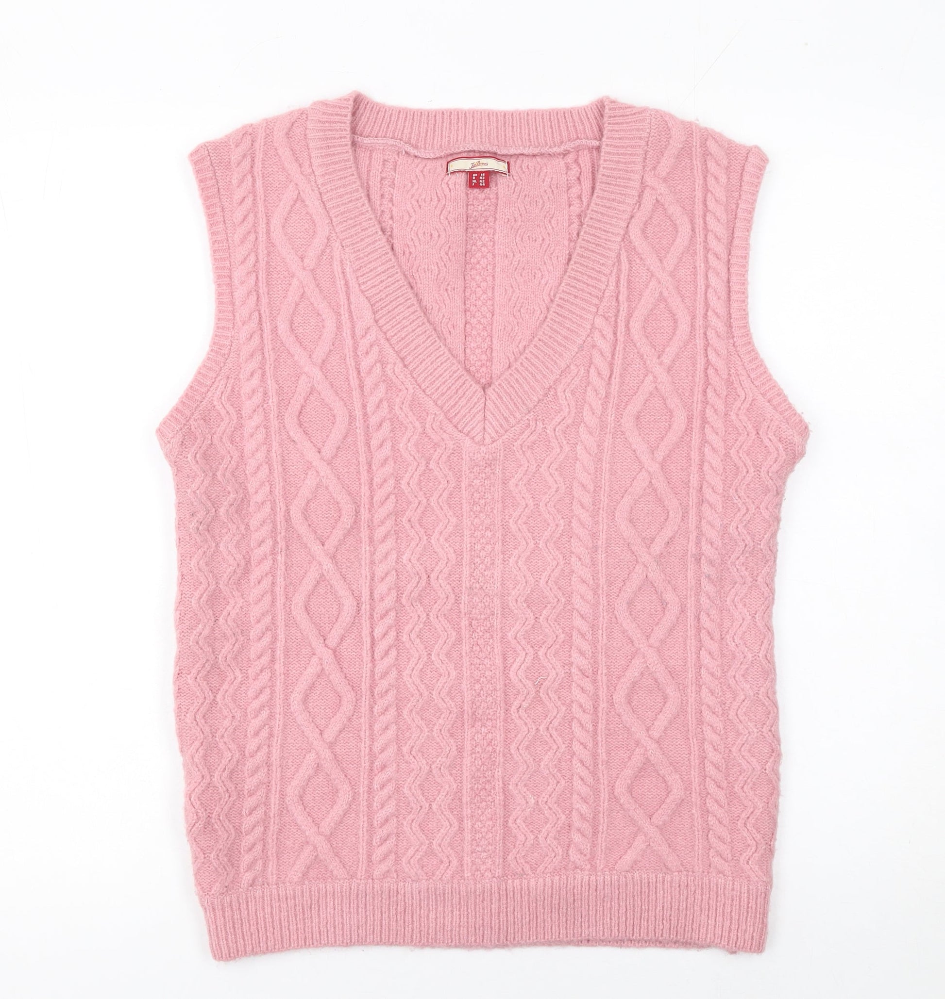 Joe Browns Women Pink Cable-Knit Wool Blend Sleeveless V-Neck Jumper Vest Size 16