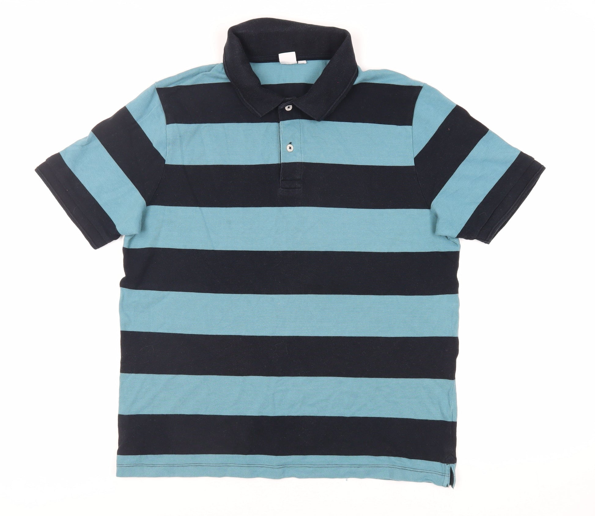 John Lewis Mens Blue Striped Cotton Polo Size L Collared Button