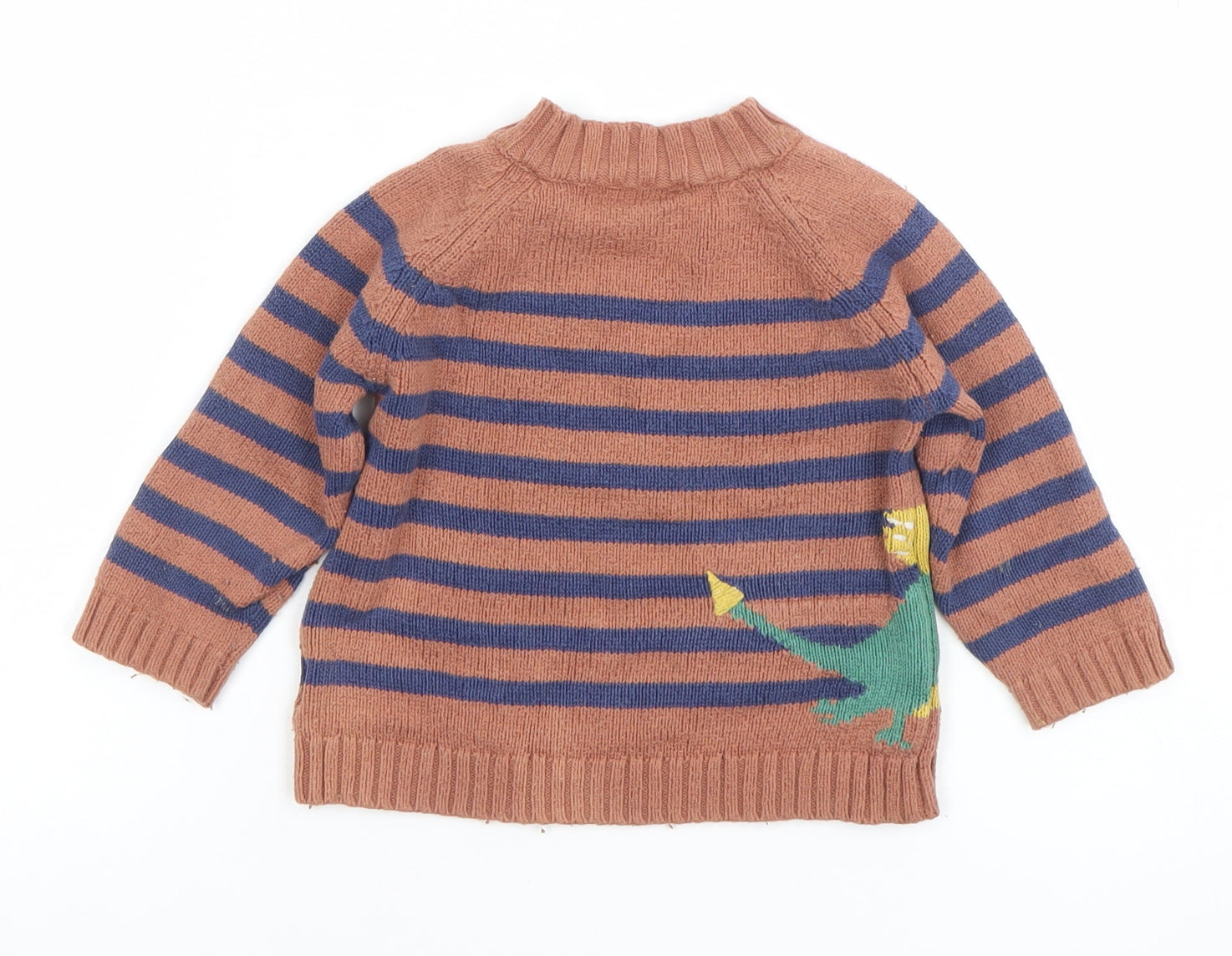 John Lewis Unisex Baby Brown Striped Dinosaur Knit Jumper 6-9 Months