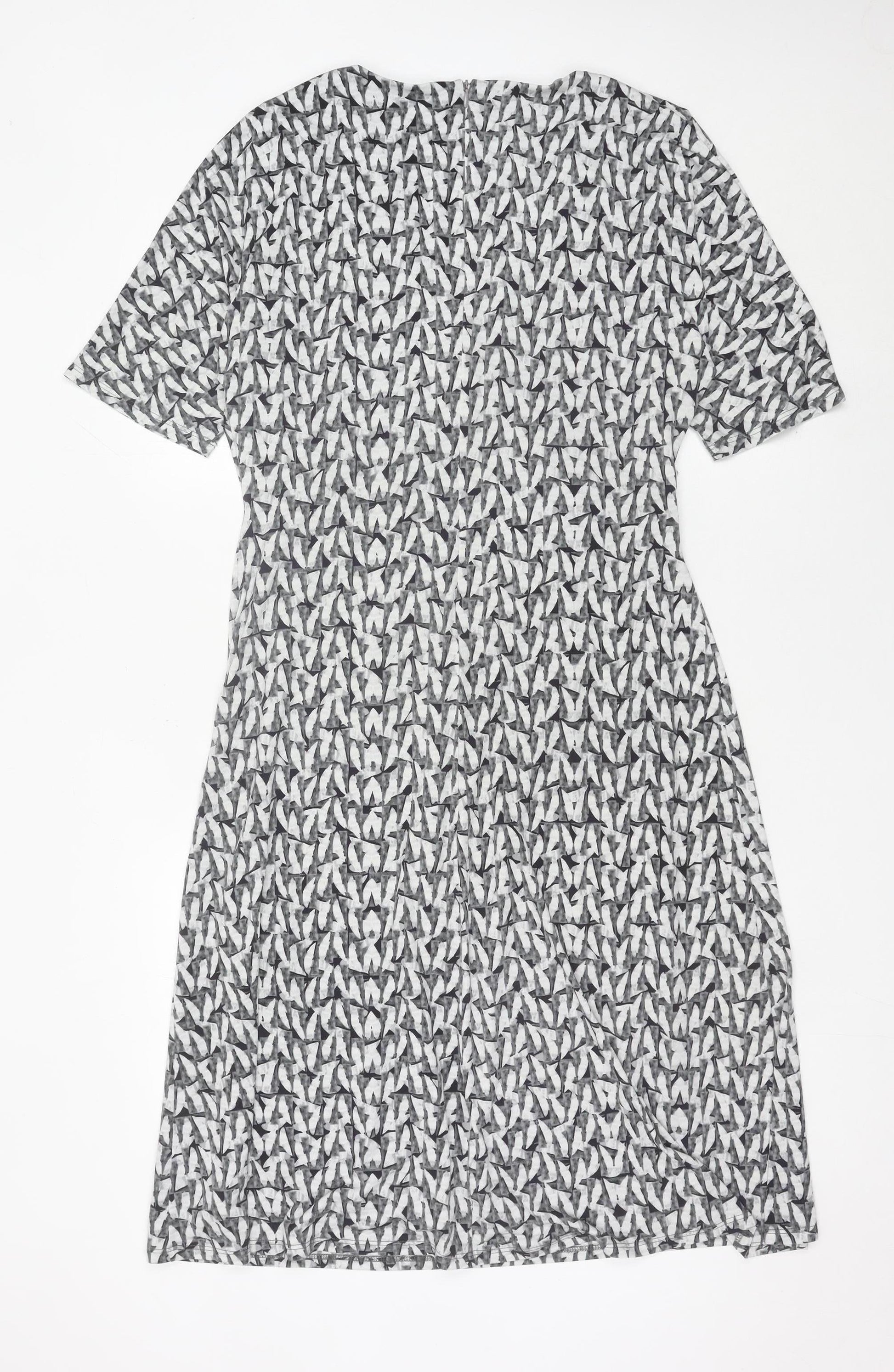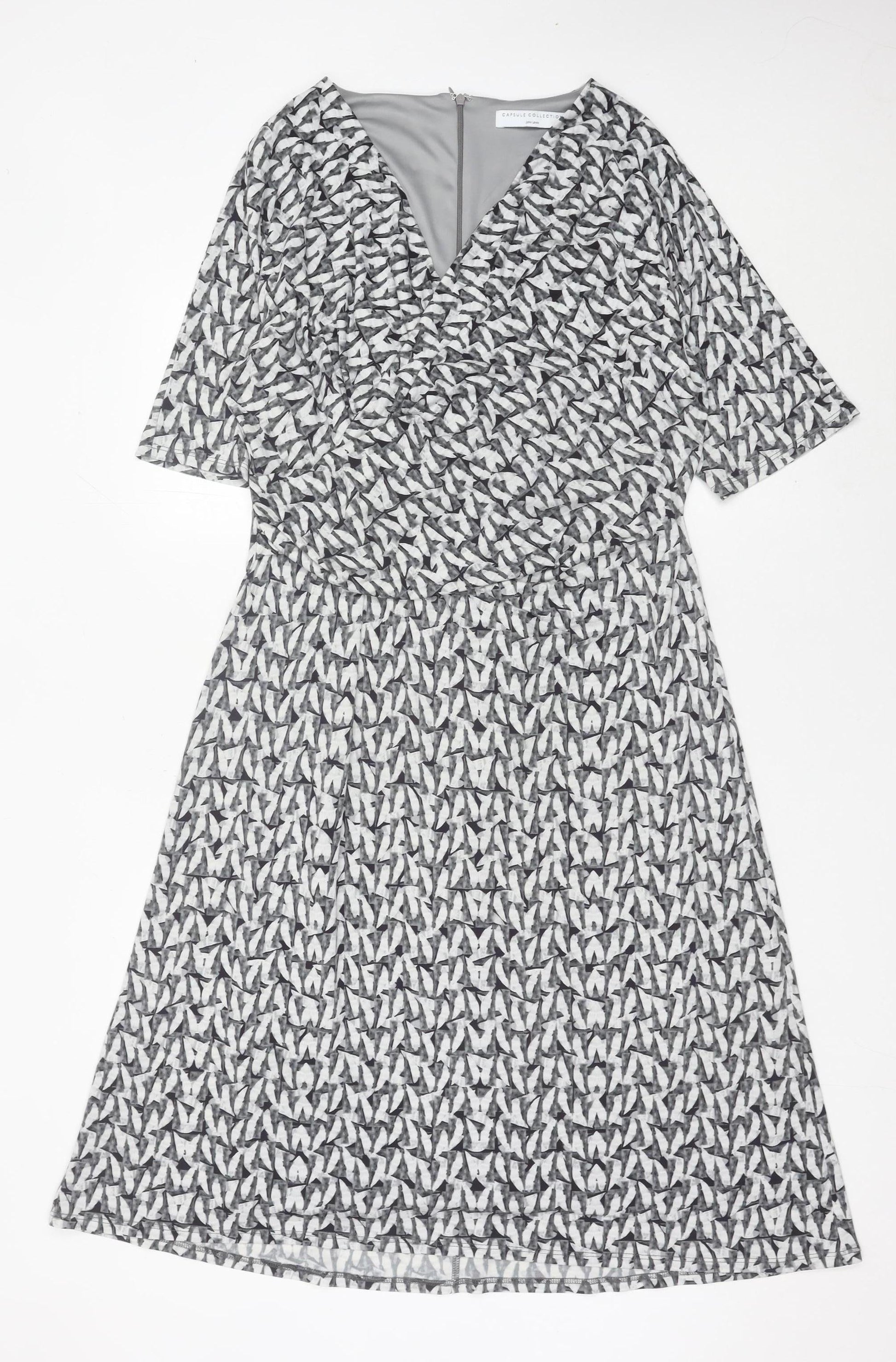 John Lewis Women Grey Geometric V-Neck Sheath Dress Size 16