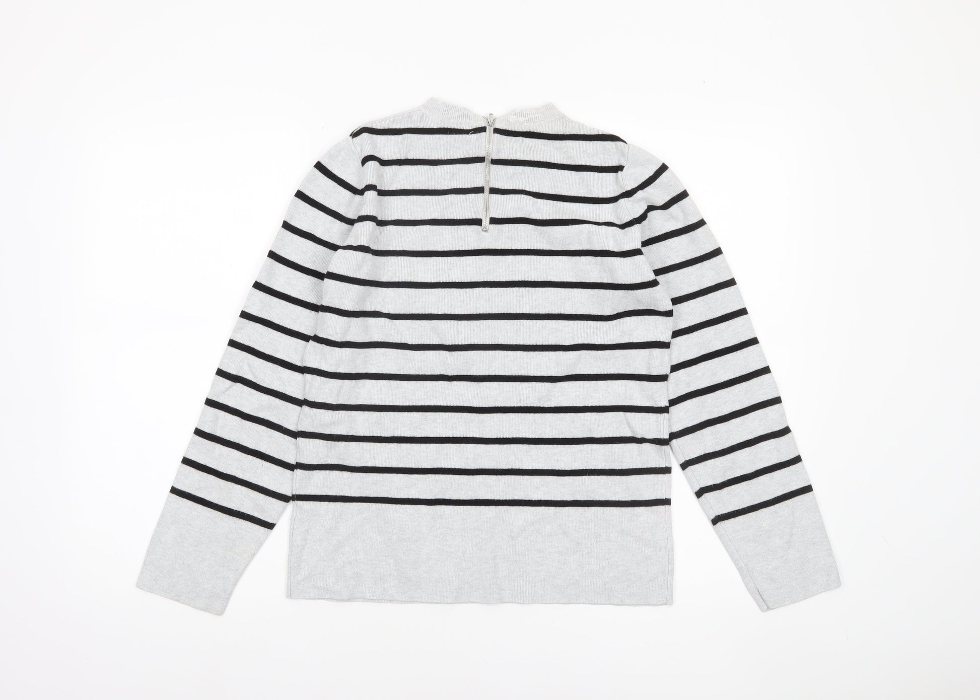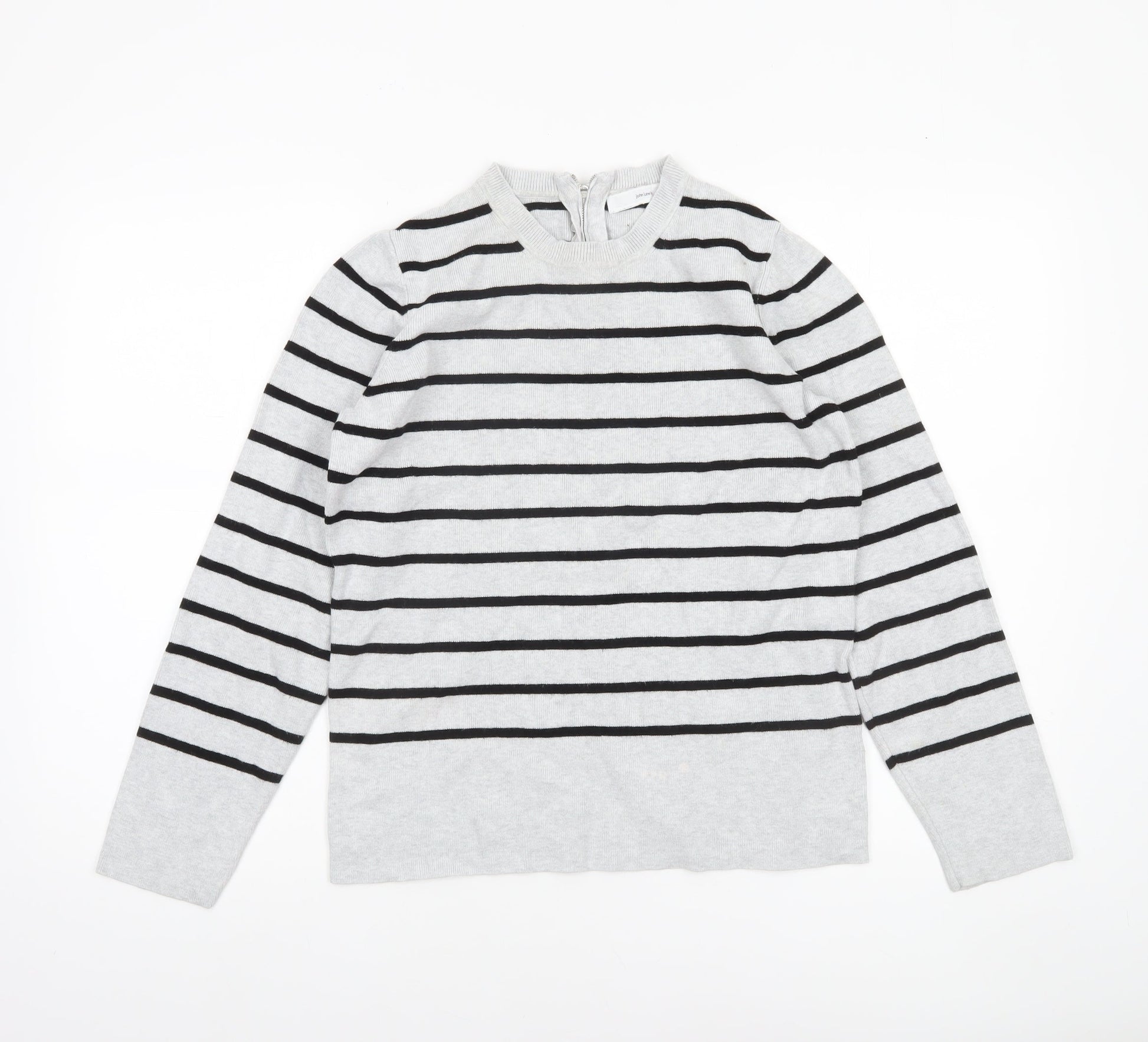 John Lewis Women’s Grey Striped Crew Neck Jumper Size 14